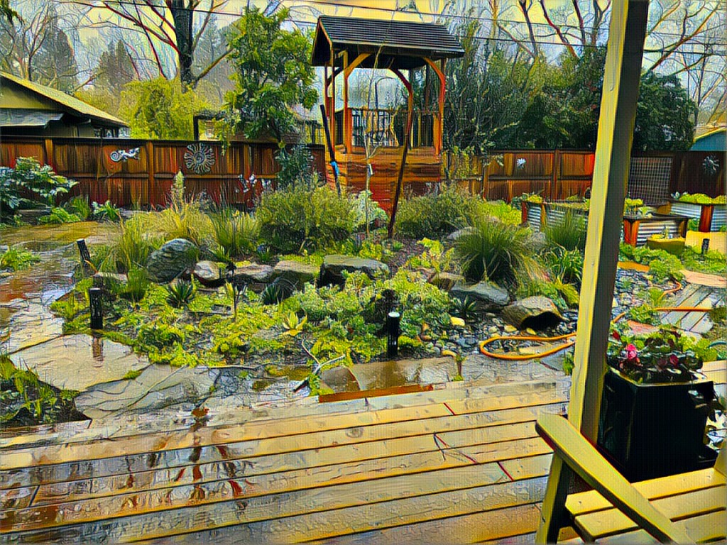 So, first off, I’ll just say I’m happy happy happy for the rain. Happy! Capital H! Soggy ground, swollen rivers, filling reservoirs, incredible snow pack. This will mean verdant, green hills. Fertile farm fields. Dewy, fresh flowers. Clean air. Nourished trees. And all kinds of happy fauna, too!