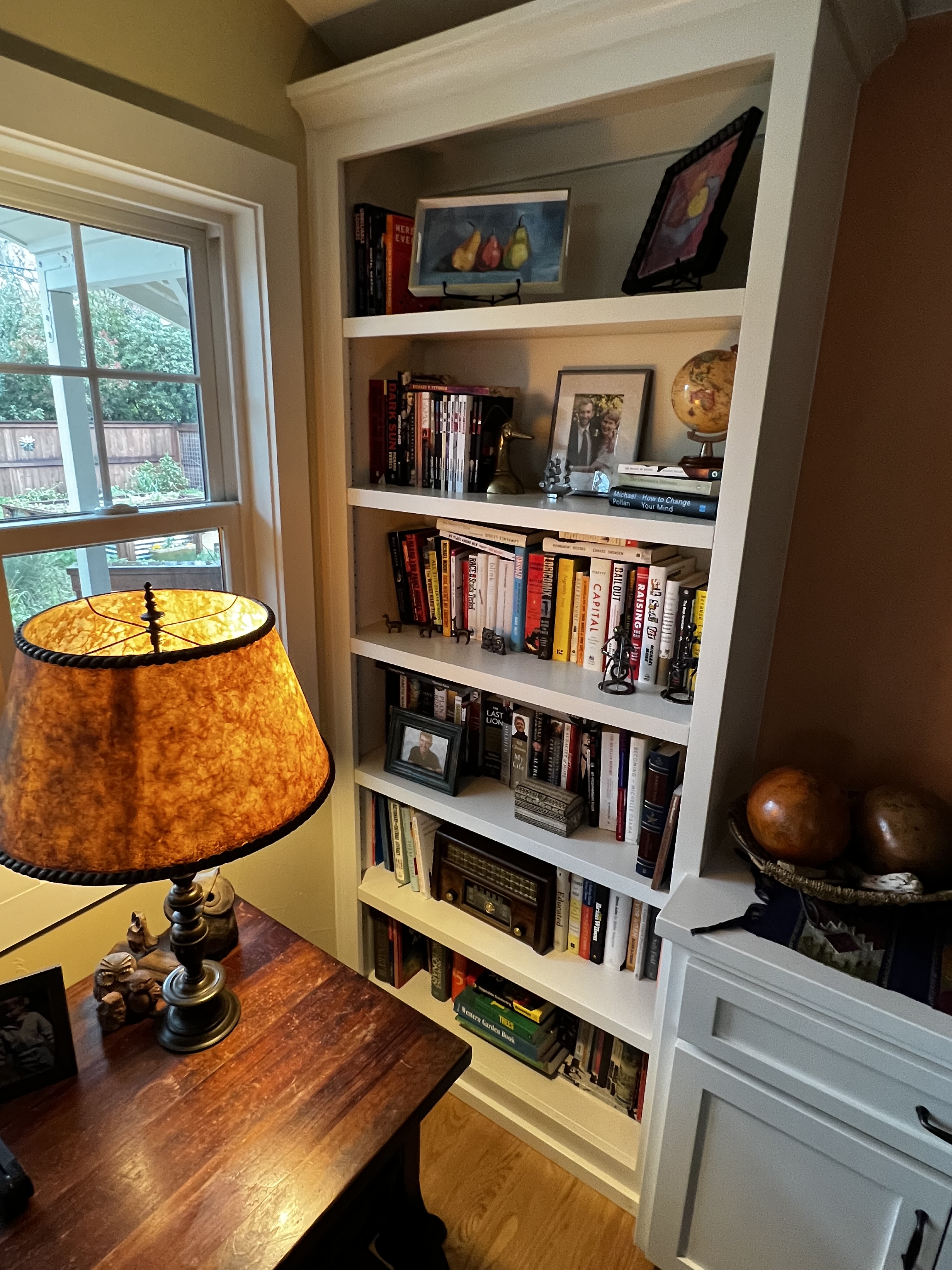 In the living room, I’ve run out of space on the shelves and am stacking books at the moment…