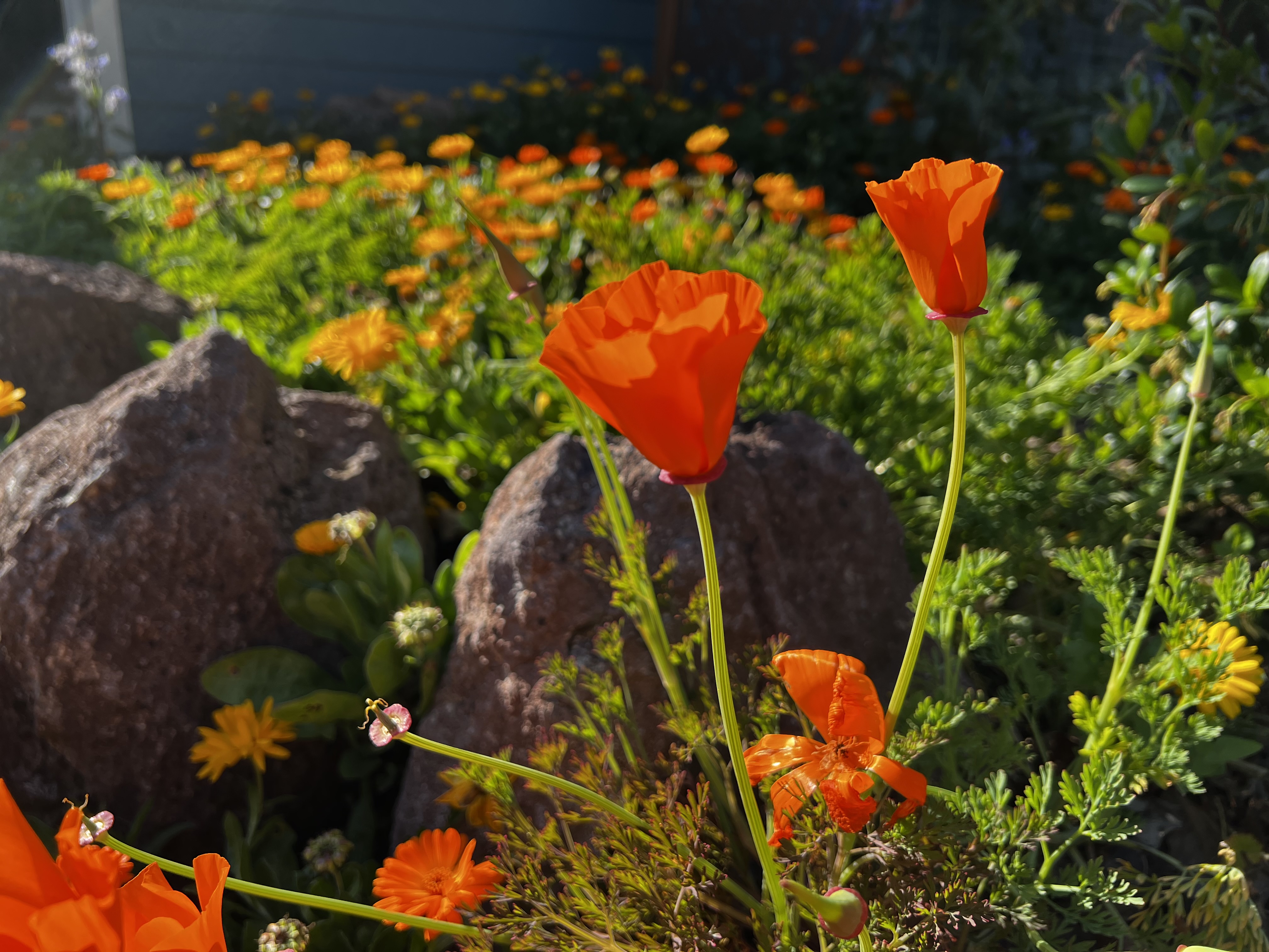 Tulip tree’s waning… but look at all the color coming in! Calendula and poppies are filling in and starting to form a blanket of orange..