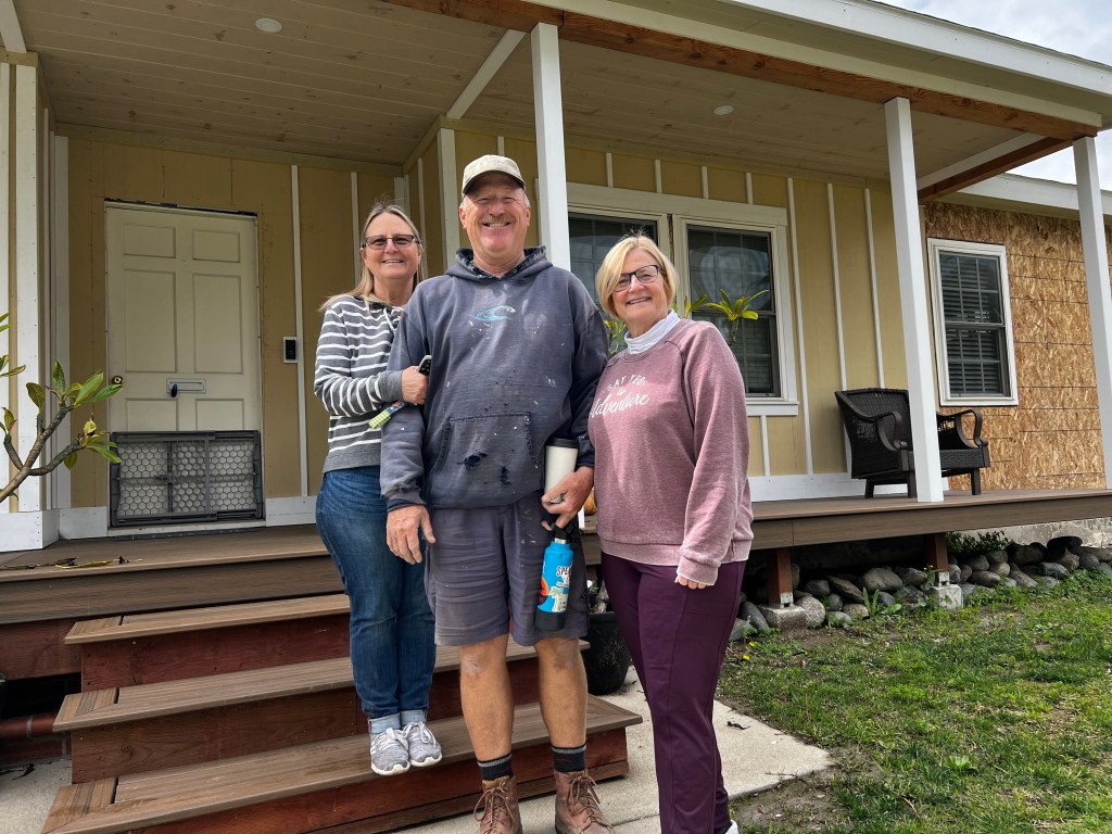 Drove to Betsy’s (where she’s starting the daunting process of sorting through her mom’s stuff), then we headed over to Anne’s to pick her up to go to lunch. This is Anne, Chris and Betsy in front of Anne’s place — a massive renovation in process: