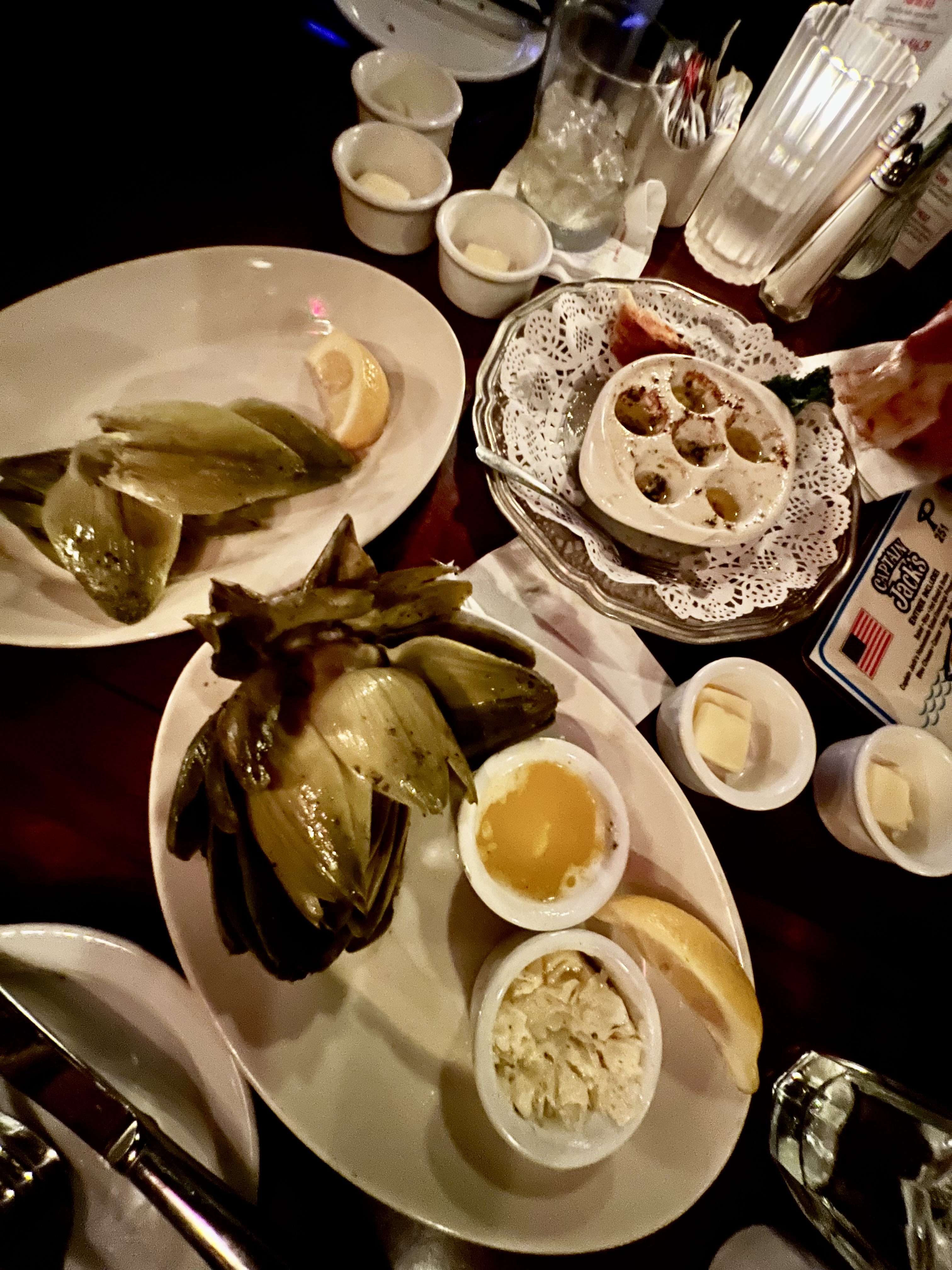 We ended the evening having dinner with Matt at Captain Jack’s (est 1965) a traditional fish and steakhouse on PCH in Sunset Beach. Had an exceptional dinner, made more so by the fact I ate my first (yep) escargot. Never need to repeat that. It was garlicky and buttery and extremely tasty, but it was a snail, so, you know. Not doing it again.