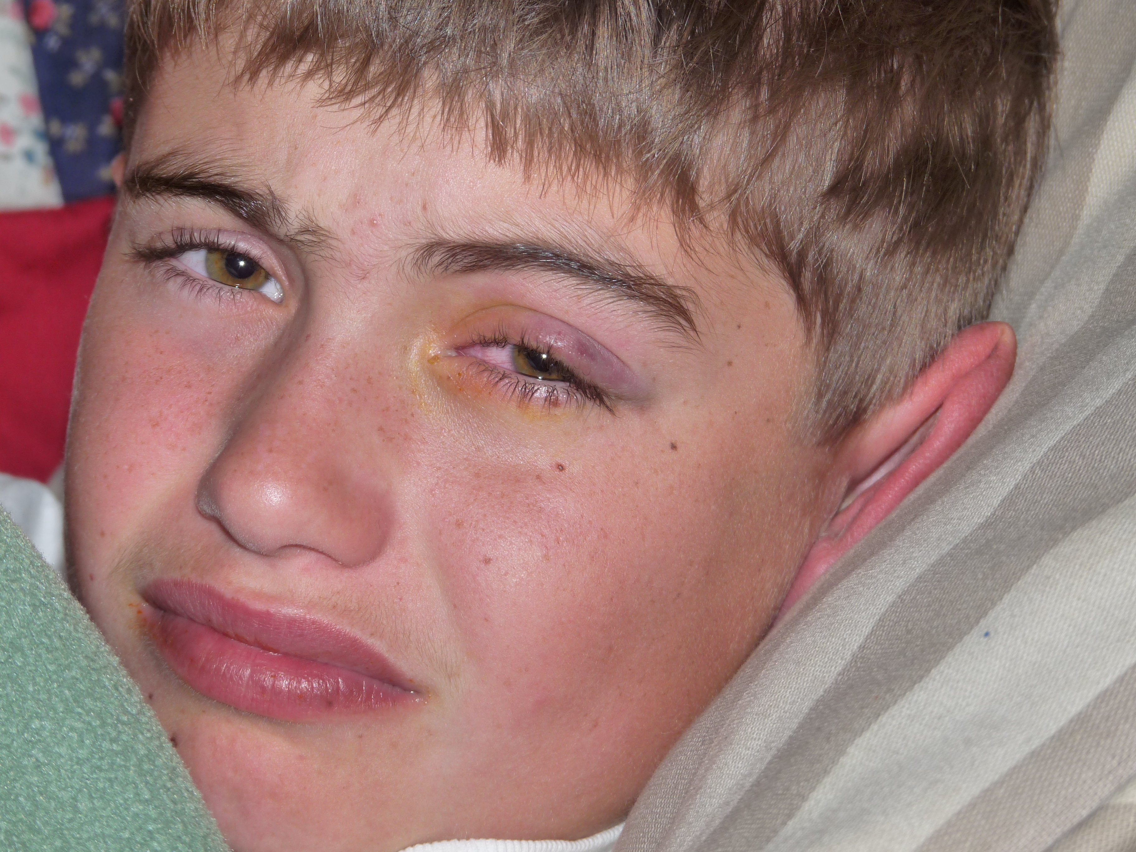 Peter was 11 years old, a big sixth grader at Cesar Chavez Elementary School. Out on the playground, he inadvertently intercepted a flying sneaker.. which hit him square in the eye. He never saw it coming. It was kicked from the foot of one of the more .. uh.. rambunctious agitators in the sixth grade class, a girl whose name I shall withhold (I can’t remember it anyway!). Not sure what she was doing, but in the course of some animated gesture, her shoe — a high top — flew off her foot, sailed through the air, and found Peter’s face.