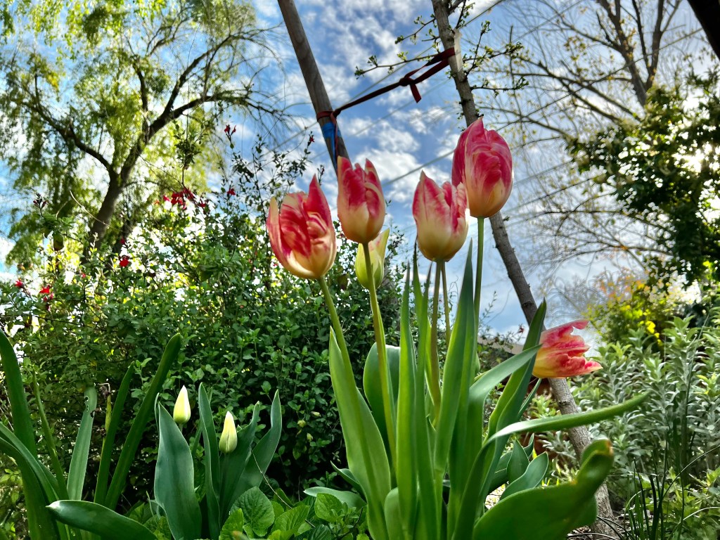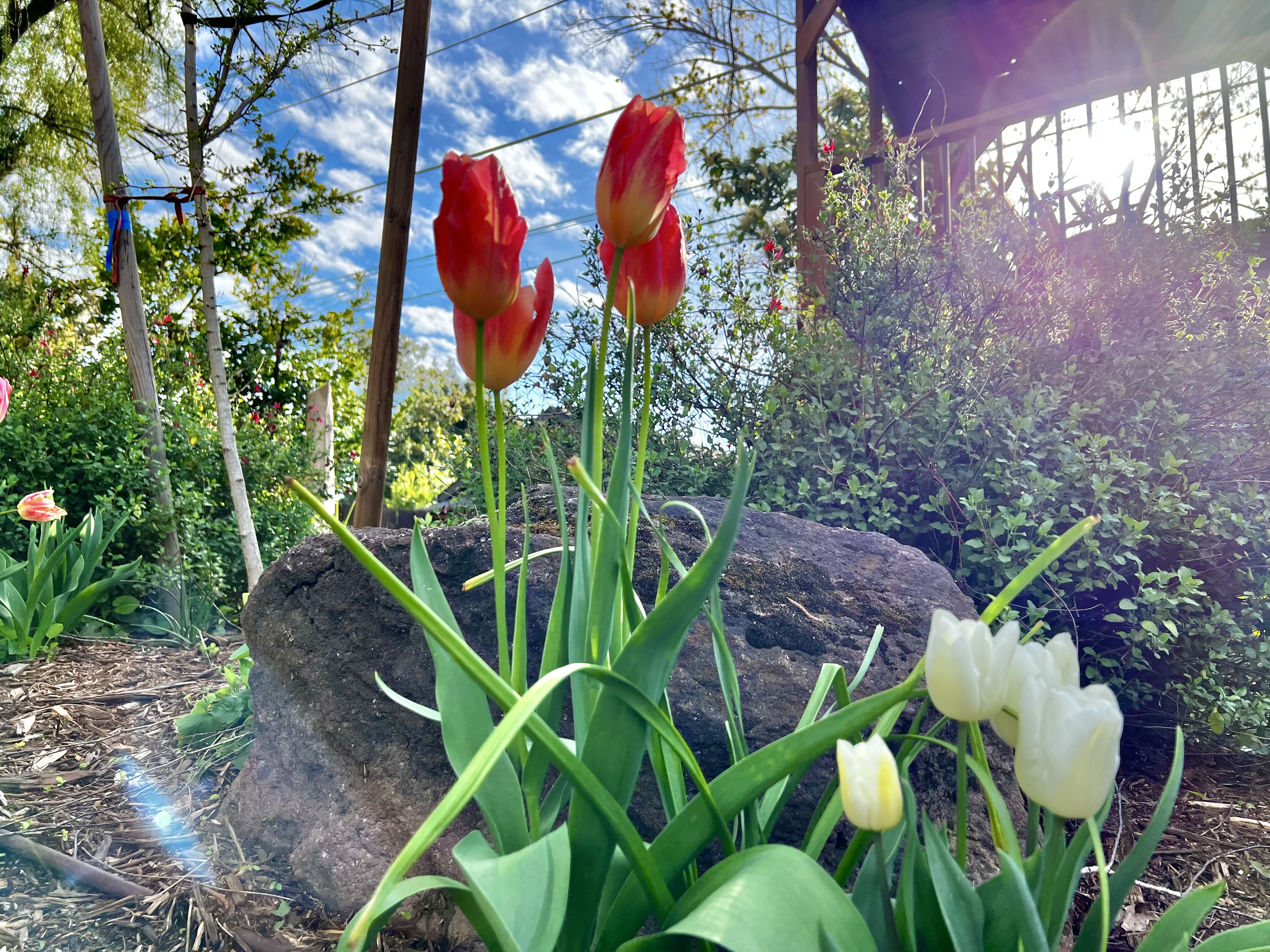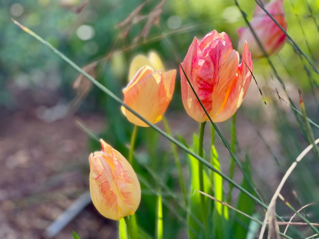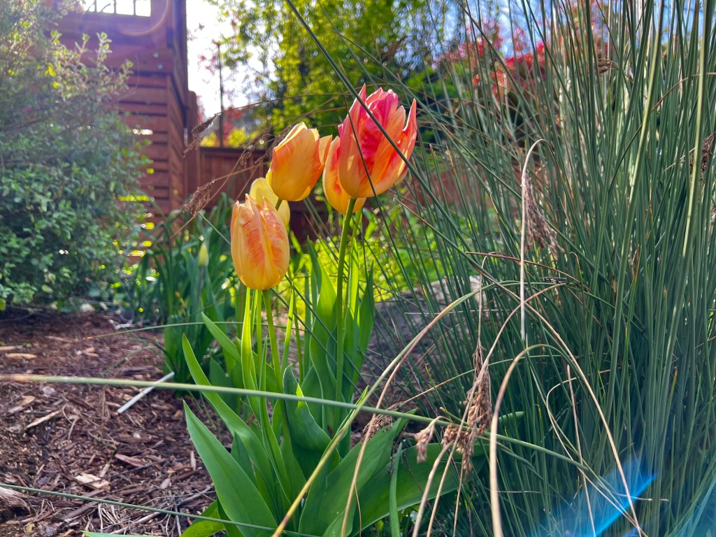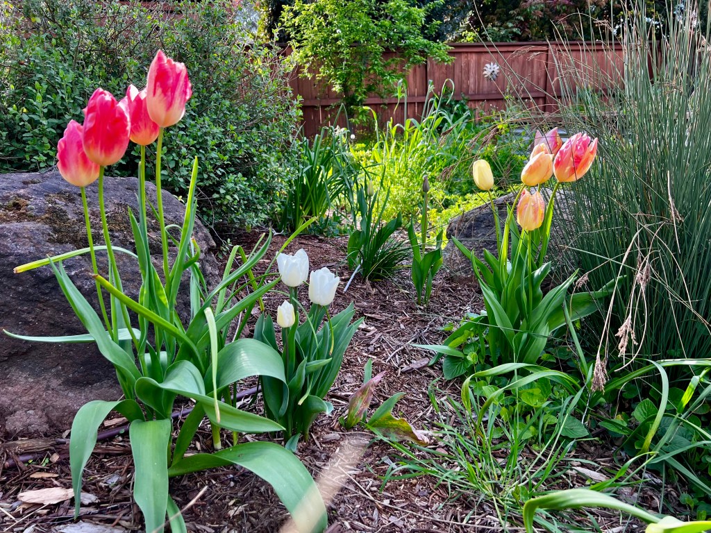 Our garden is dotted with tulips way too pretty to cut, so I’m letting them flourish in the yard within view of the desk at which I sit to blog.