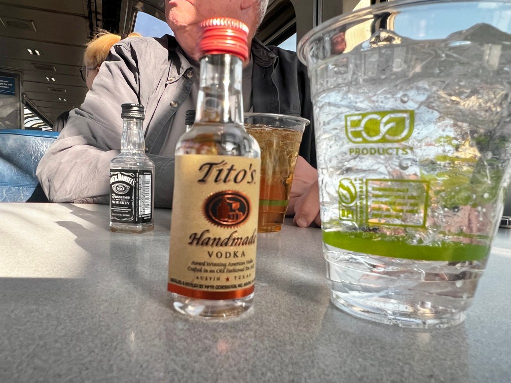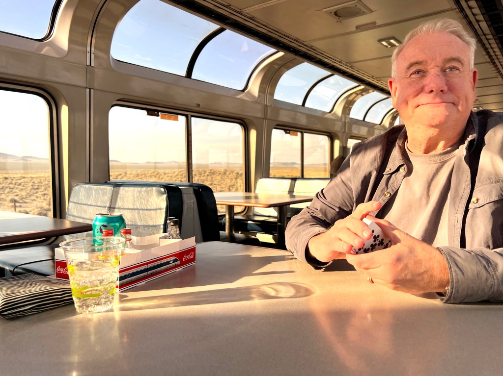 One of my favorite things: when the train stops on the platform, train personnel jump out and stride right over to where you are and say things like, “Kari and Matt Peterson? Come right this way!” Our car’s porter, Jason, proceeds to load and stow our bags, and give us a quick orientation — lunch will be served at such and such, bathrooms and showers are here, observation car is there, snacks and drinks can be purchased down below, bed service is … etc. We each have a button in our roomette for summoning Jason, as needed.