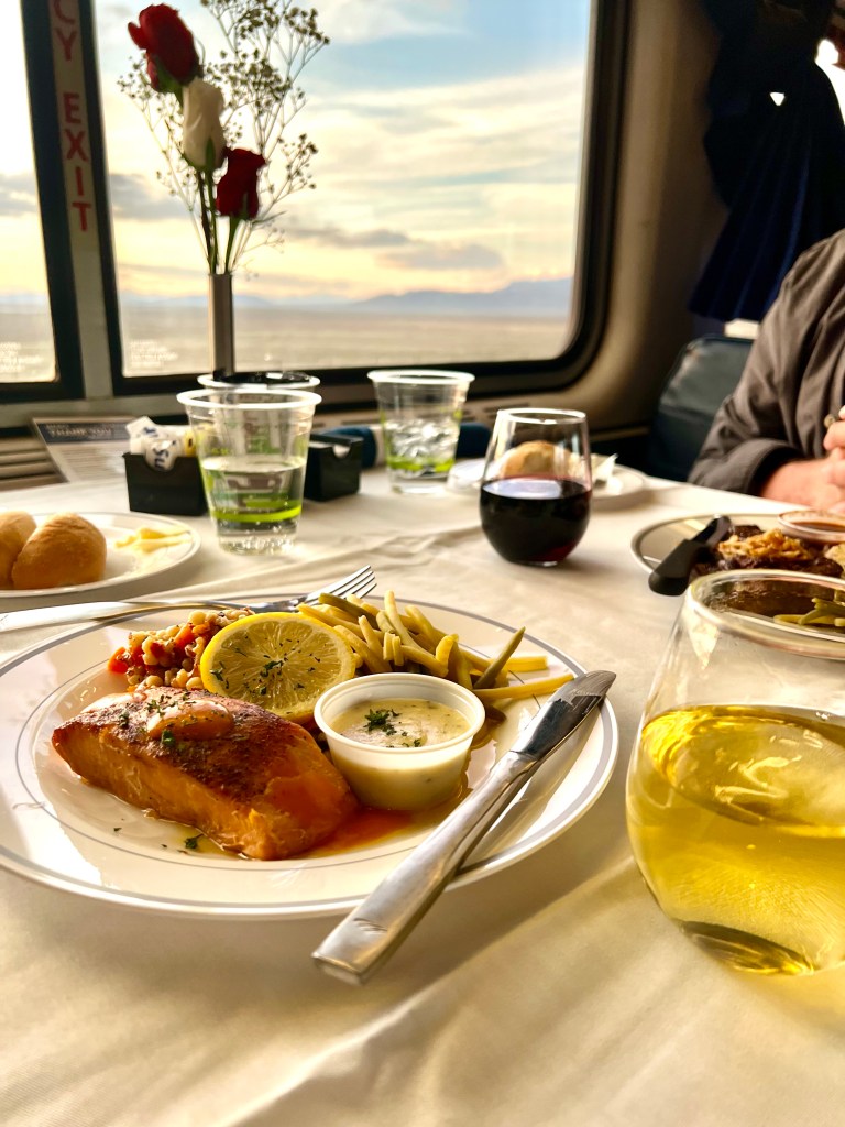 We have 6:30 dinner reservations… and the scenery is lovely. Steak for Matt, Salmon for me…