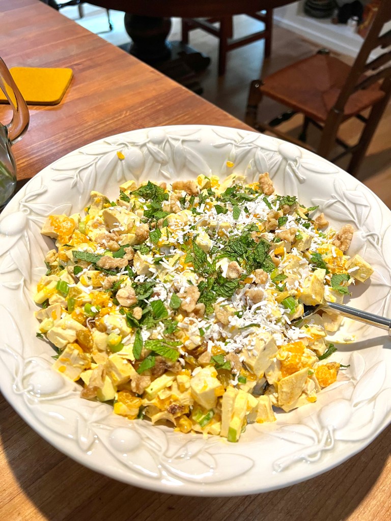 - Kari, main: curry chicken, apple, walnut, mandarin orange, mint, coconut, golden raisins, mayo