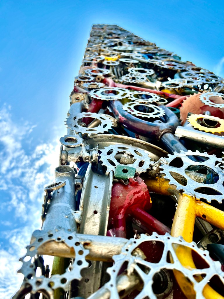 This is the bike part sculpture at 3rd and University. It glows at night, it reaches for the sun during the day. It’s a pretty awesome obelisk. (Now, while I got the spelling of obelisk right on the first try, I may be wrong in describing this prominent, impressive, super tall thing as an obelisk. It may be that an obelisk is only an obelisk if it’s made of stone.. preferably a single slab-o-stone.
