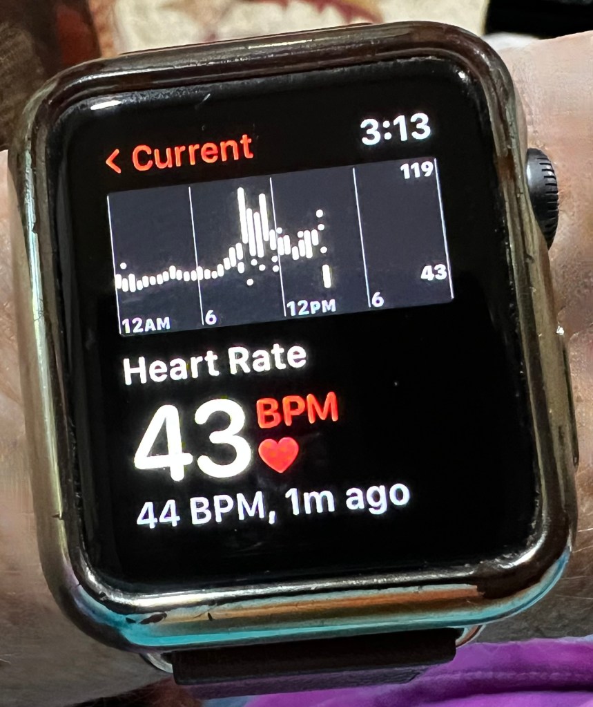 This doesn’t seem good. A low heart rate is usually a good thing, a sign of a healthy heart. but… this seems too low.
