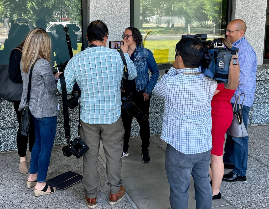 After dates were set for the next procedural steps, we (victim families/friends) gathered with the assistant DA and a victims’ liaison who answered questions and explained all kinds of things. It’s an interesting process.. again, learning a lot. Maria and I then made our way to the building’s exit, where we found a lot of media waiting. I answered questions last time following the arraignment (it was too fresh and emotional for Maria then), Maria did it this time. She was eloquent and thoughtful. And she spoke of compassion toward everyone involved. As David would have wanted.