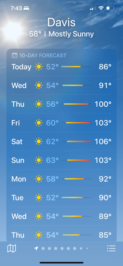 Davis is gearing up for a heat wave. Look at this crazy ten day outlook: