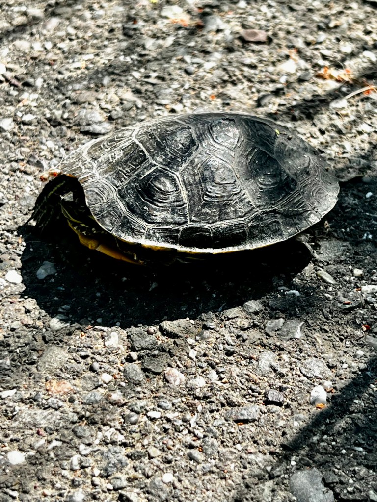 But, today, Wednesday, it was still safe for Janet and me to go for a long, exposed walk in the North Davis ditch. It is truly lovely up there; I’m always glad to see new things.. like this turtle walking across our path. This is a wee one… his/her mama looked to be about five yards away and moving at a good clip back into the brush.