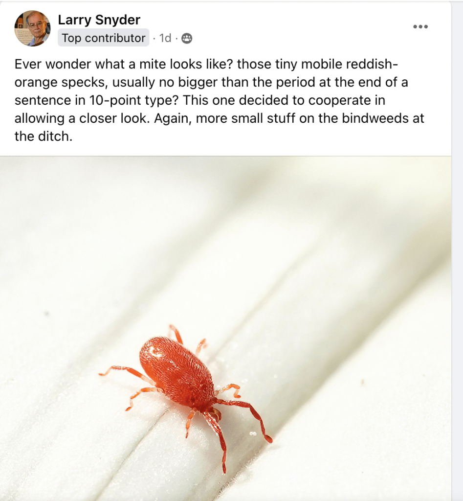 I have a hard time looking at them (bugs, you know), but I do appreciate the patient, careful, skillful photos. Larry’s got photography chops!