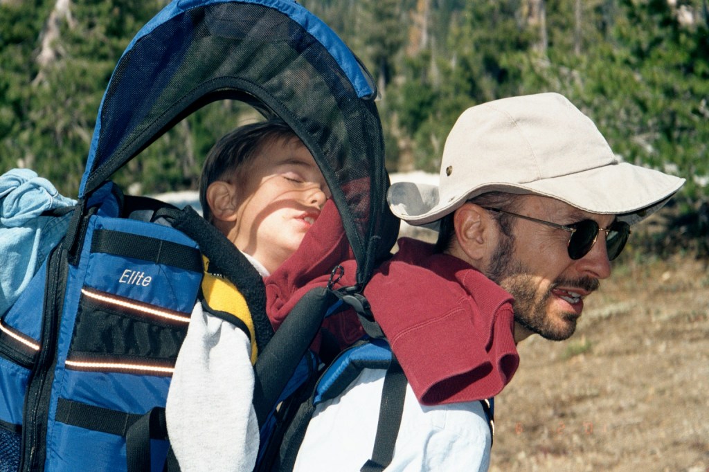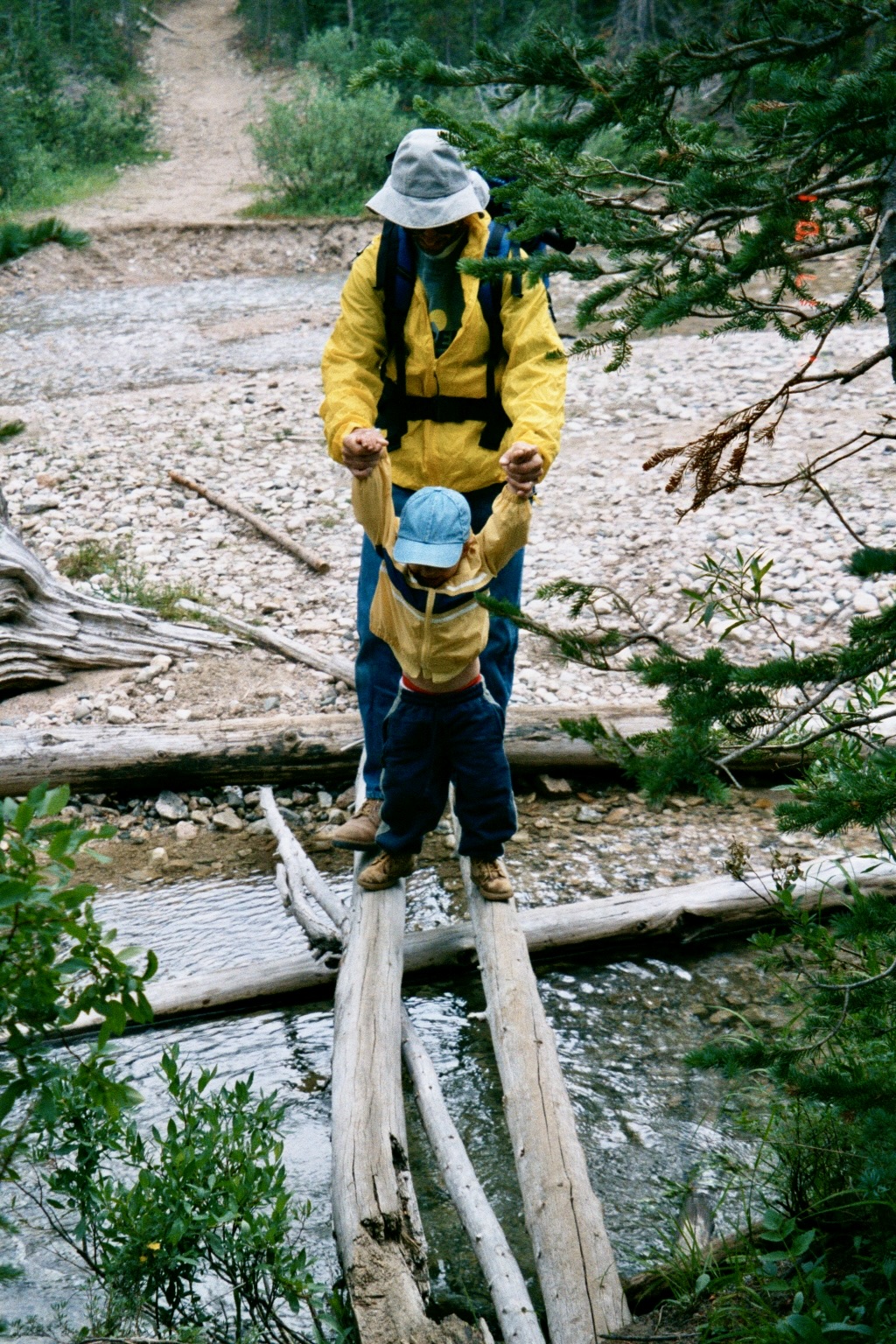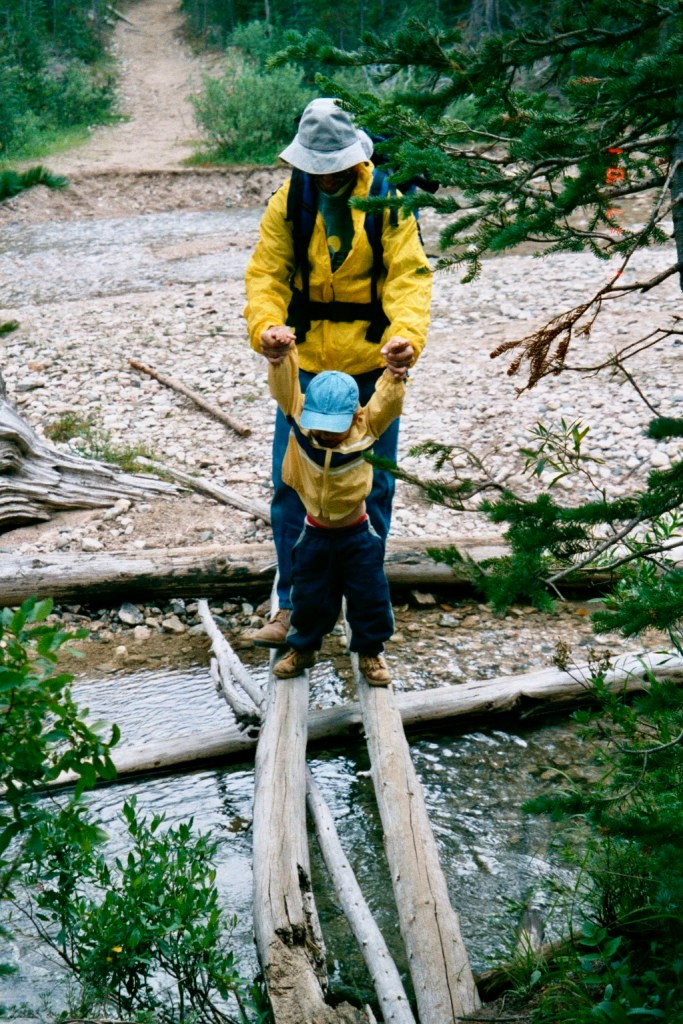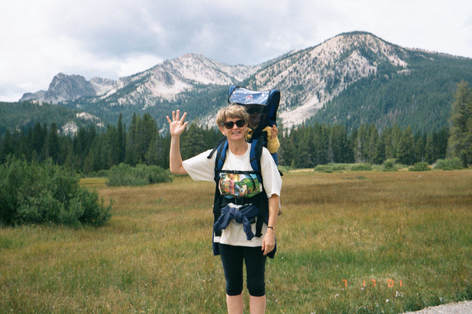 This was a July 2001 trip to the Sawtooths in Northern Idaho, part of a family reunion trip. At three, he was a part time hiker, part time rider.