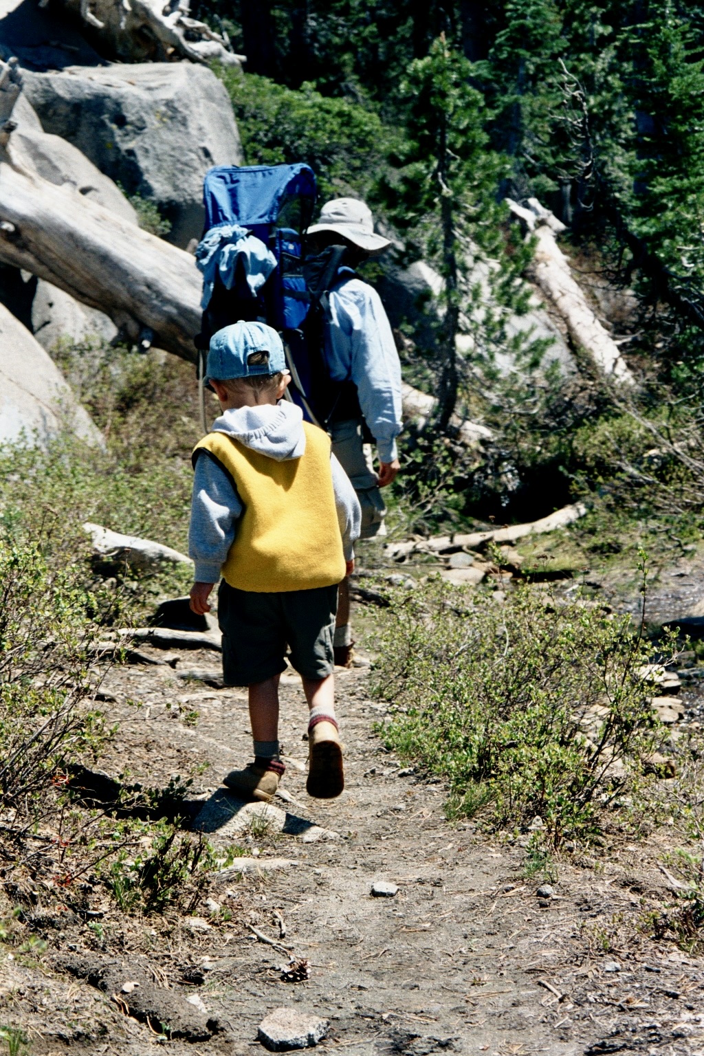 As we prepare for our 24th annual trip to Yosemite in two weeks — this year Peter’s bringing Maya — I thought I’d do a little throwback Monday and post a few Peter hiking pictures from the earliest year I have digital photos: 2001. Peter is three years old. (Note: Our first family Yosemite year was 2000, but I’d have to scan non-digital photos from that year, so instead I’ll just throwback to July 2001. I should also note that Peter’s first Sierra trip was to Echo Lake in 1998 at eight weeks old.)