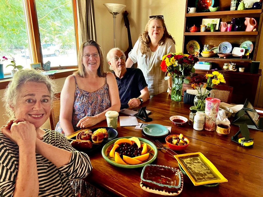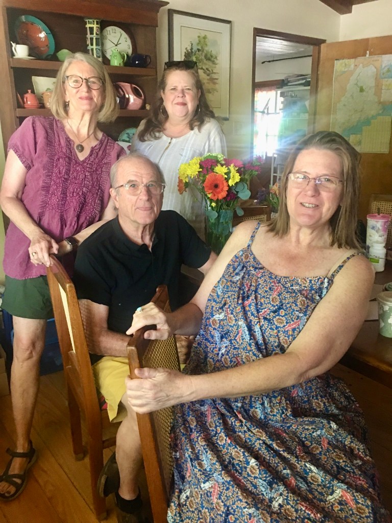 Turns out, she was in the shower (!) so we had to bide our time before being quietly ushered in by Bill, who was in on the surprise. Then we had to sit quietly in the dining room and wait…. and when she wandered cluelessly into the kitchen… kapow!