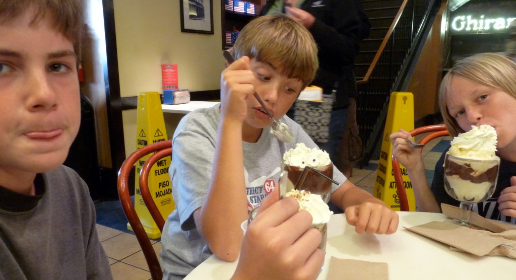 Then it was over to Ghirardelli Square to see chocolate being made and eat some chocolate sundaes….