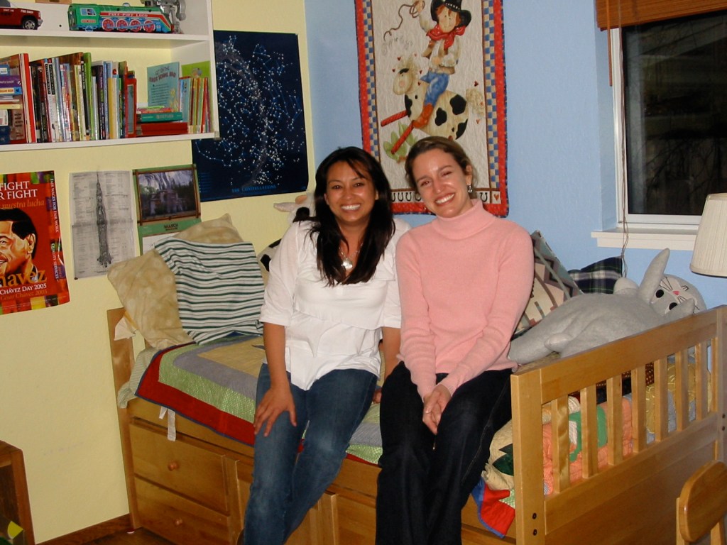 Senora Bugsch and Senorita Cruz sitting on Peter’s bed (happened when we hosted one course of a progressive dinner.. a fundraiser for Chavez).. they teased that this photo could be used as blackmail one day: