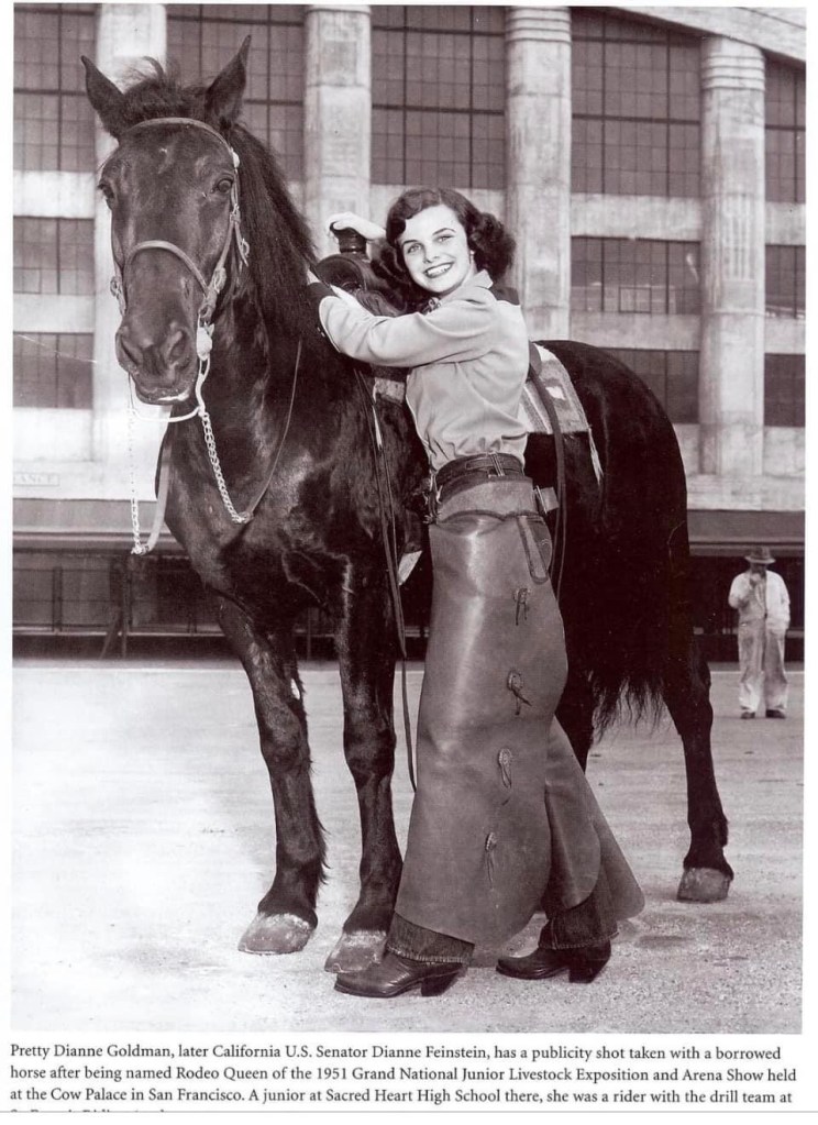 As long as we’re on the subject of DiFi…. here’s a photo a high school friend posted today. Winter is a horse person (among other things!) and was a sorority sister of Dianne’s daughter when they were both at Cal. I really love this picture. She was a junior at Sacred Heart High School in SF and a member of its horse drill team.