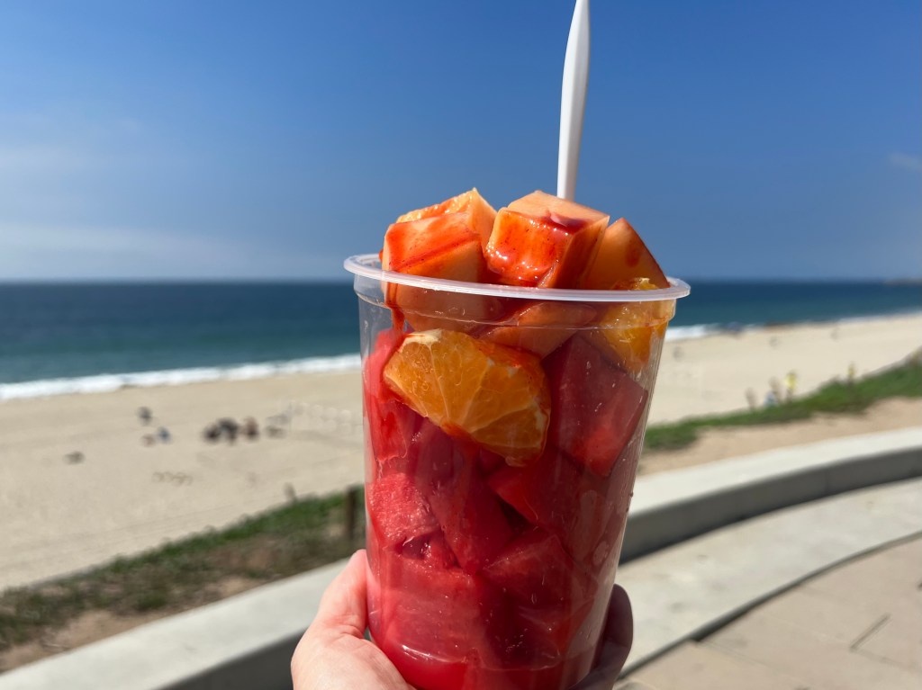 Was going to reheat some leftovers for lunch, from dinner at Turquoise last night.. but then saw a guy cutting fruit in a little pop up along the Esplanade and hadda.. it’s watermelon, cantaloupe, orange with some hot pepper sauce.. oh my.