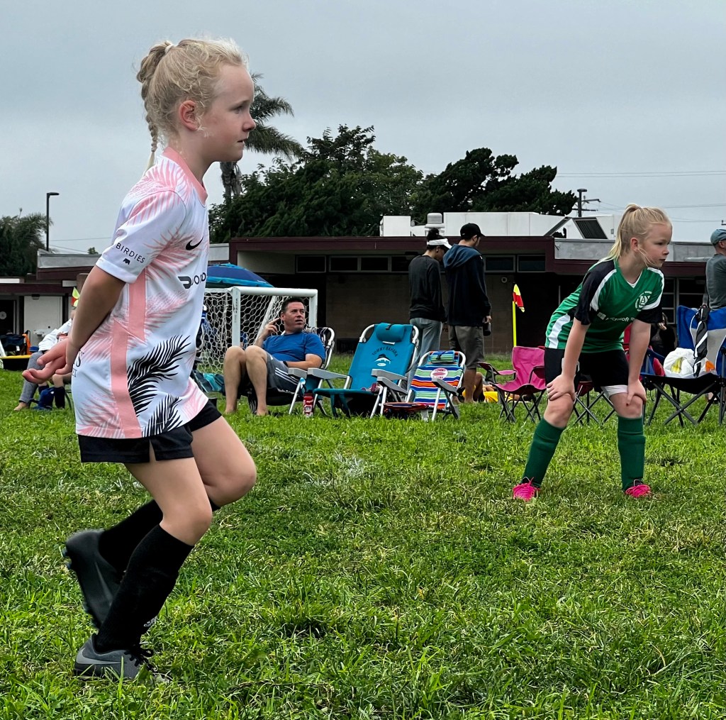 Getting some halftime coaching from Everly, Magnolia’s first cousin (Megan’s daughter).