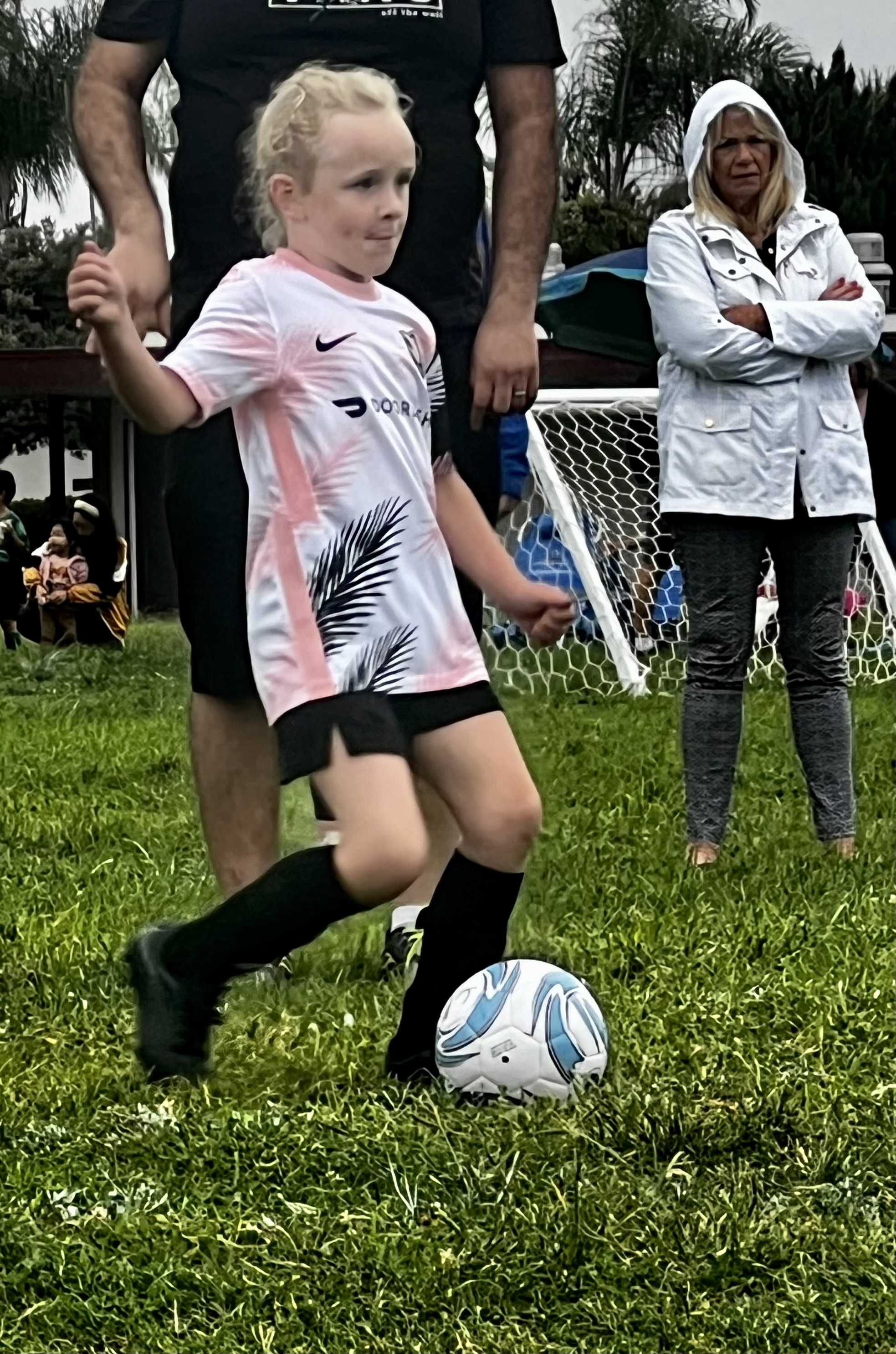 This was Mags’ first outing on the soccer field. She started tentatively (and some of her moves were a cross between Irish dancing and soccer), but within minutes she was in the hunt, in the middle of every scrum, and got her foot on the ball more than a few times! She took the ball well down the field for one impressive play (and, classically, it was toward the wrong goal) and, most importantly, LOVED being on the field. John took her out after the game to buy a soccer ball and says she wanted to practice all afternoon. That’s a win.