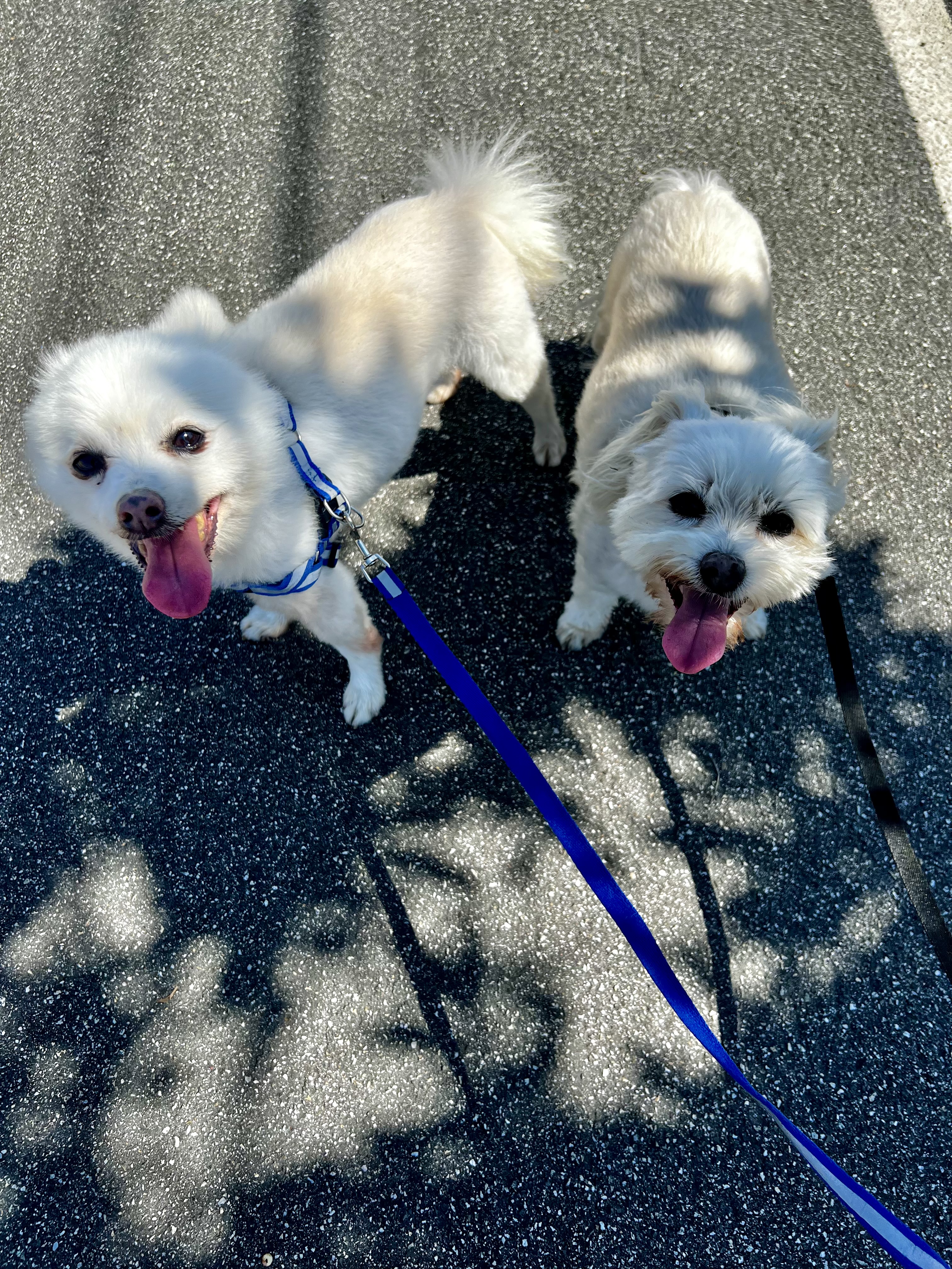 My charges this morning. Stop, sniff, mark territory, poop (Klondyke three times, Joey zero).