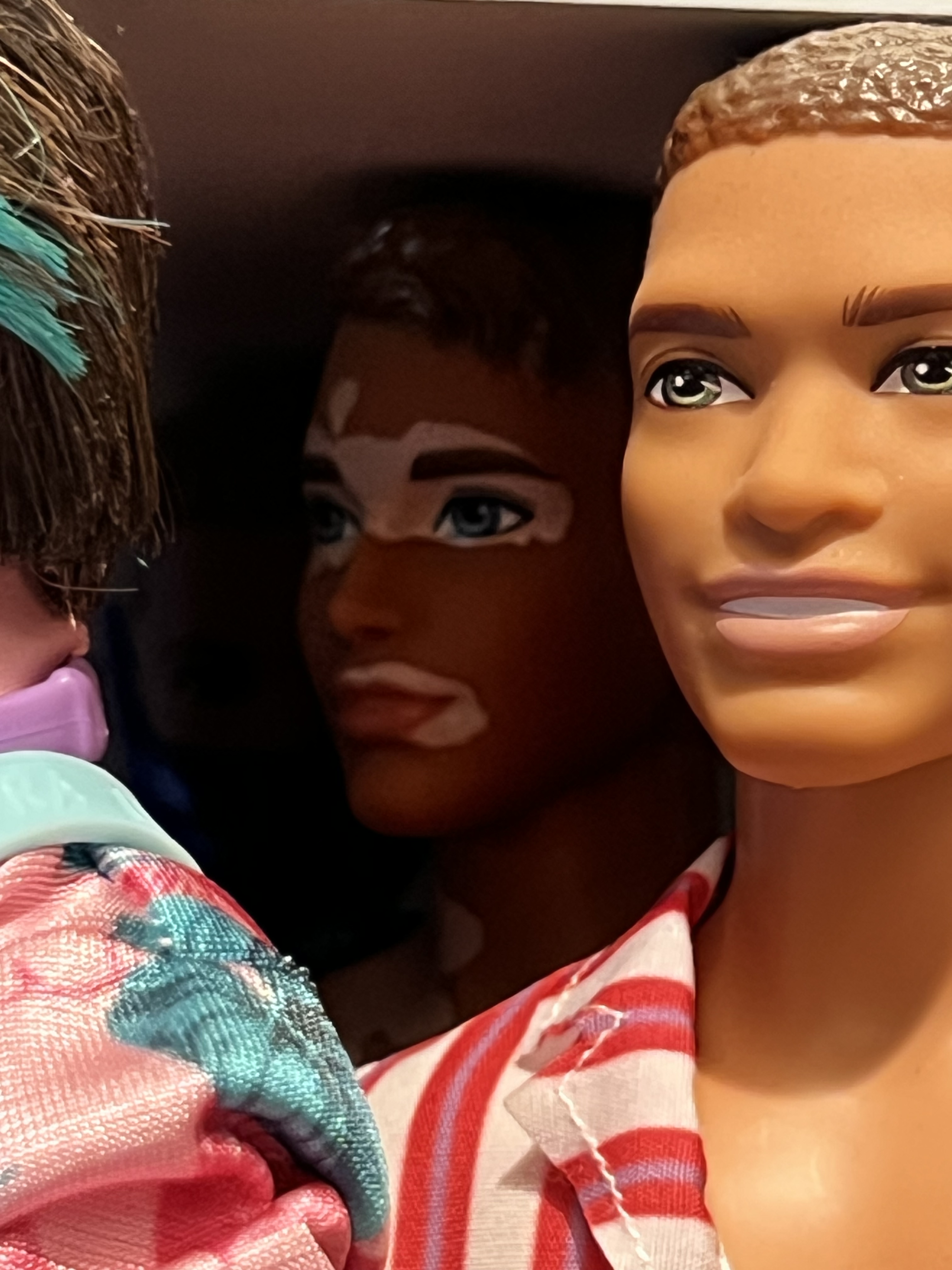 Ken dolls are pretty modern, I must say… black Kens, skin condition Kens, amputee Kens, trans Kens…