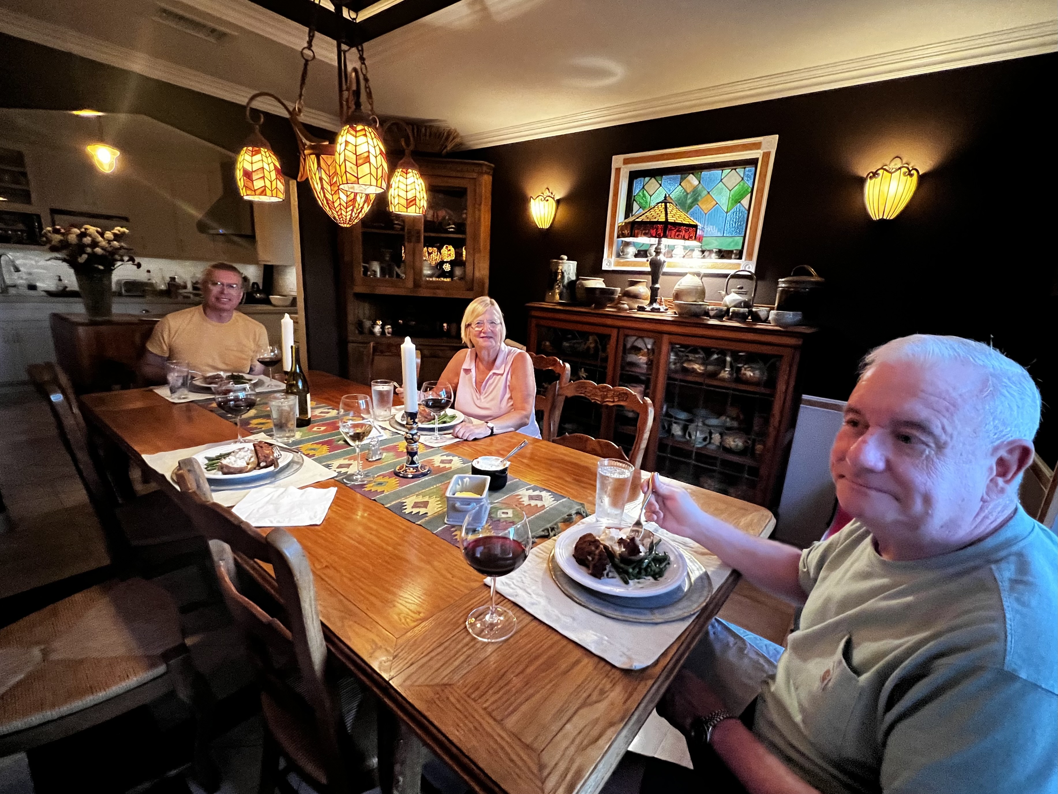 An easy, unscheduled day if there ever was one. Time for a long workout, a stop-go walk with the doggies, hours by the pool with lots of blog catch up and NYT puzzles, evening with Betsy (5th dinner of the trip!).