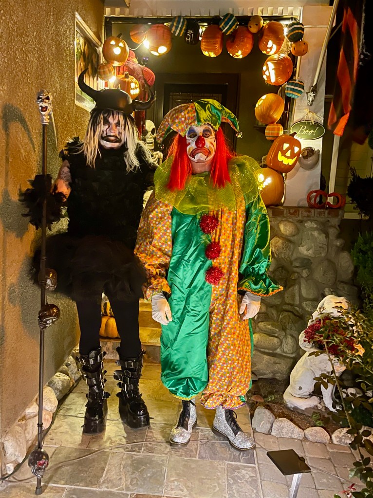 Speaking of Halloween… Michael, seamster extraordinaire, is still at it. Though the annual tradition of elaborate group costumes (and West Hollywood parades) is behind him, he’s still producing some outrageously creative costumes for himself and Matt. Here they are this year… on their way to Legends for a costume party extravaganza…
