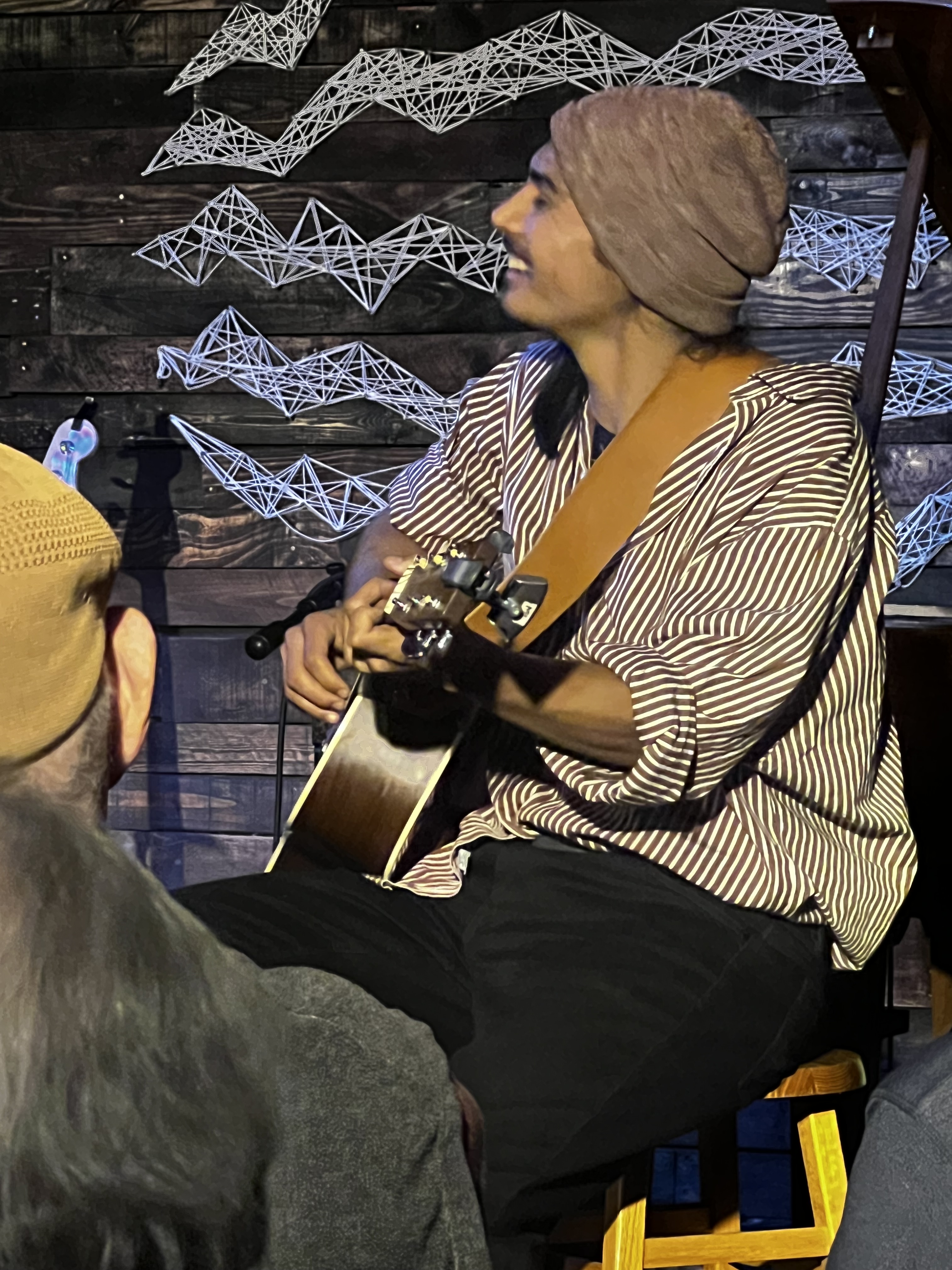 But we REALLY went to this concert tonight to see Brendon, a kid who played baseball for many years with Peter. Brendon was one of our favorite kids — a great baseball player with an even better attitude, who was just the nicest and friendliest little kid around. Brendon was a standout little leaguer and he and Peter both went on to play on a travel team together. At one point, he got in a terrible dirt bike accident and broke his leg. He was down for a long time and, it turns out, his leg never really healed, which brought his baseball playing days to an end. I learned from his dad tonight that it was during this time that he picked up a guitar for the first time. In fact, his first (and only) guitar teacher was tonight’s drummer (who also plays a mean guitar!). The two of them opened the second half of the show with an acoustic duet that was gorgeous…