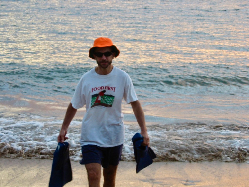 Above: Jim will swim in warm water. I got to play some golf with John.