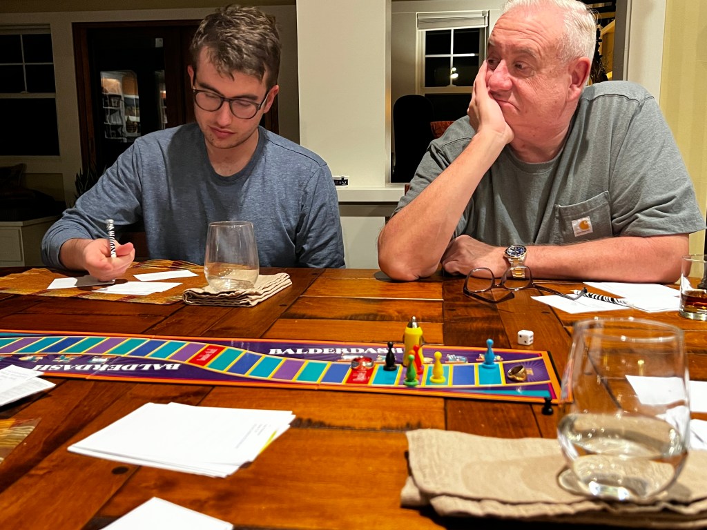 And we finished with Balderdash.. somewhat of a tradition at this point and quite hilarious as usual. This pic doesn’t capture the hilarity, but it’s what I have. And funnily, Matt actually won in a rout.