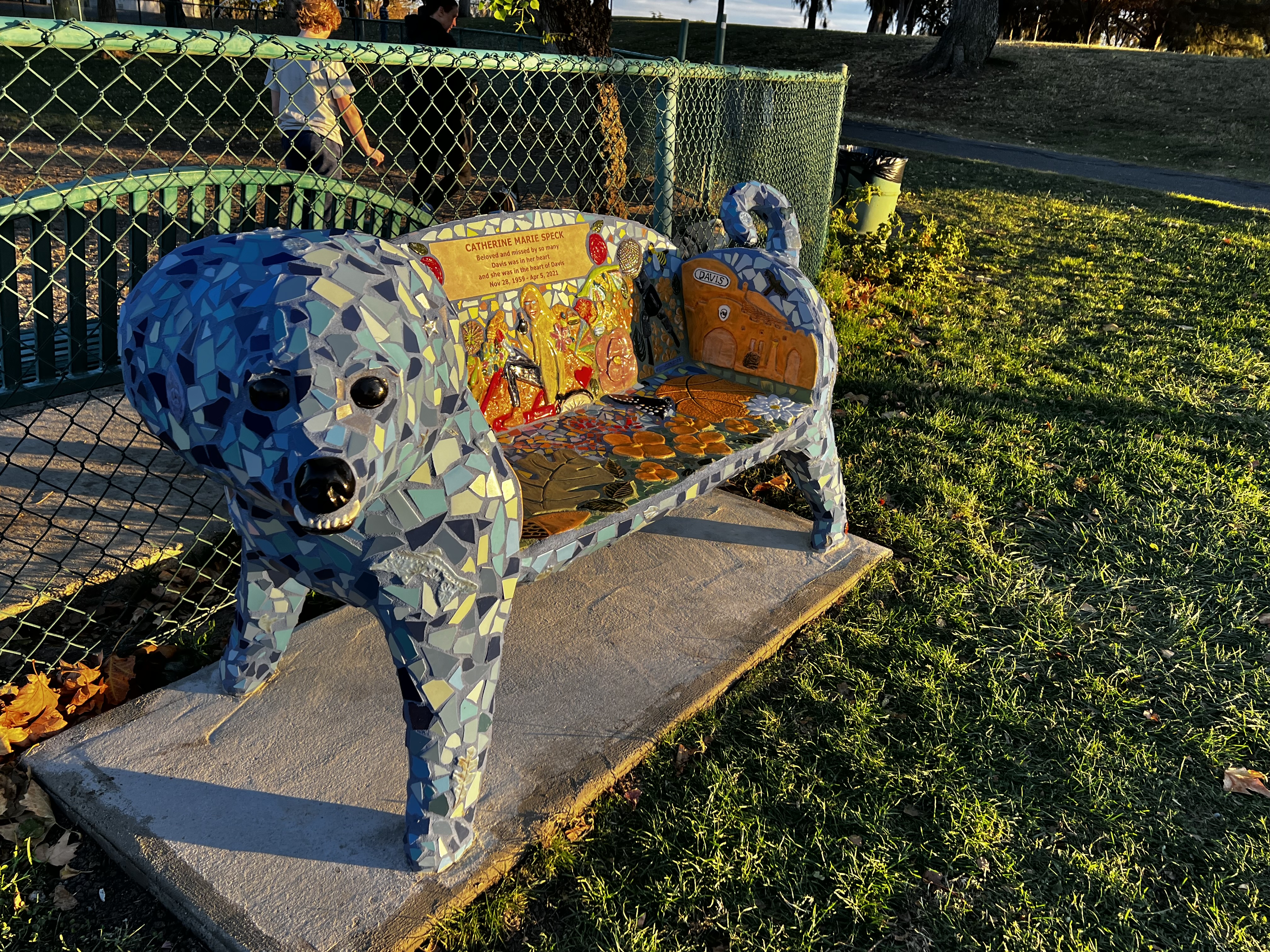 Then saw where the new Cathy Speck (and Mazie) memorial bench was installed. It’s lovely!