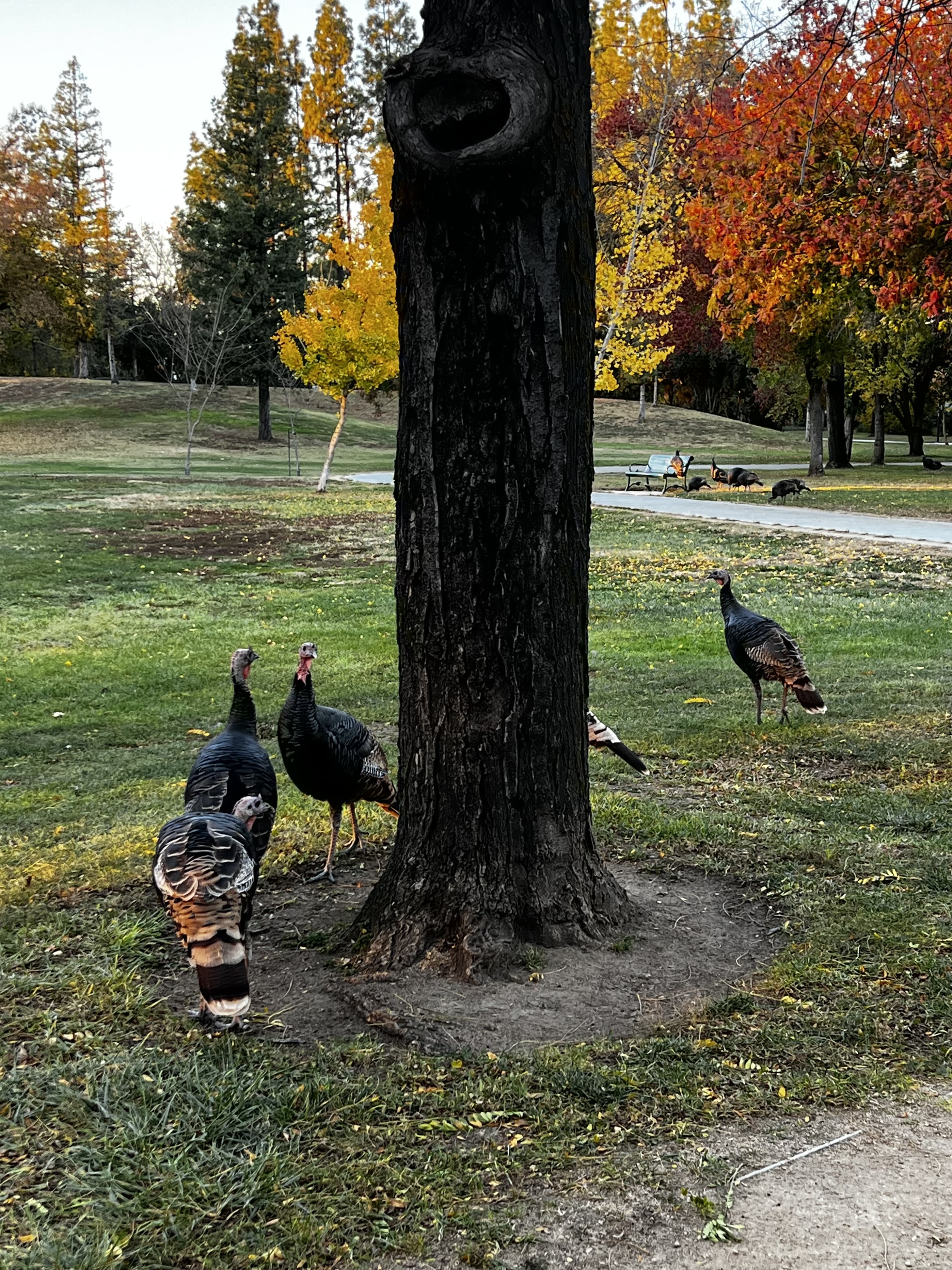 Peter was really digging the warm weather, commenting over and over that if he lived here (or generally in California), he could continue to do stuff outside as the winter comes. He’s quite bummed to be returning to 5 months of cold and grey, though he’s eager to get back to Maya (and his work). He took a few pics like these as we passed through Community Park as evidence to make his case to Maya that living in California is a good thing …
