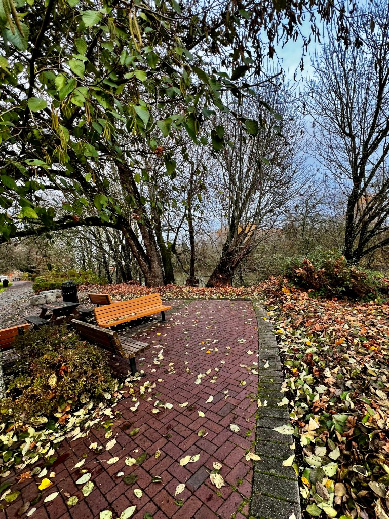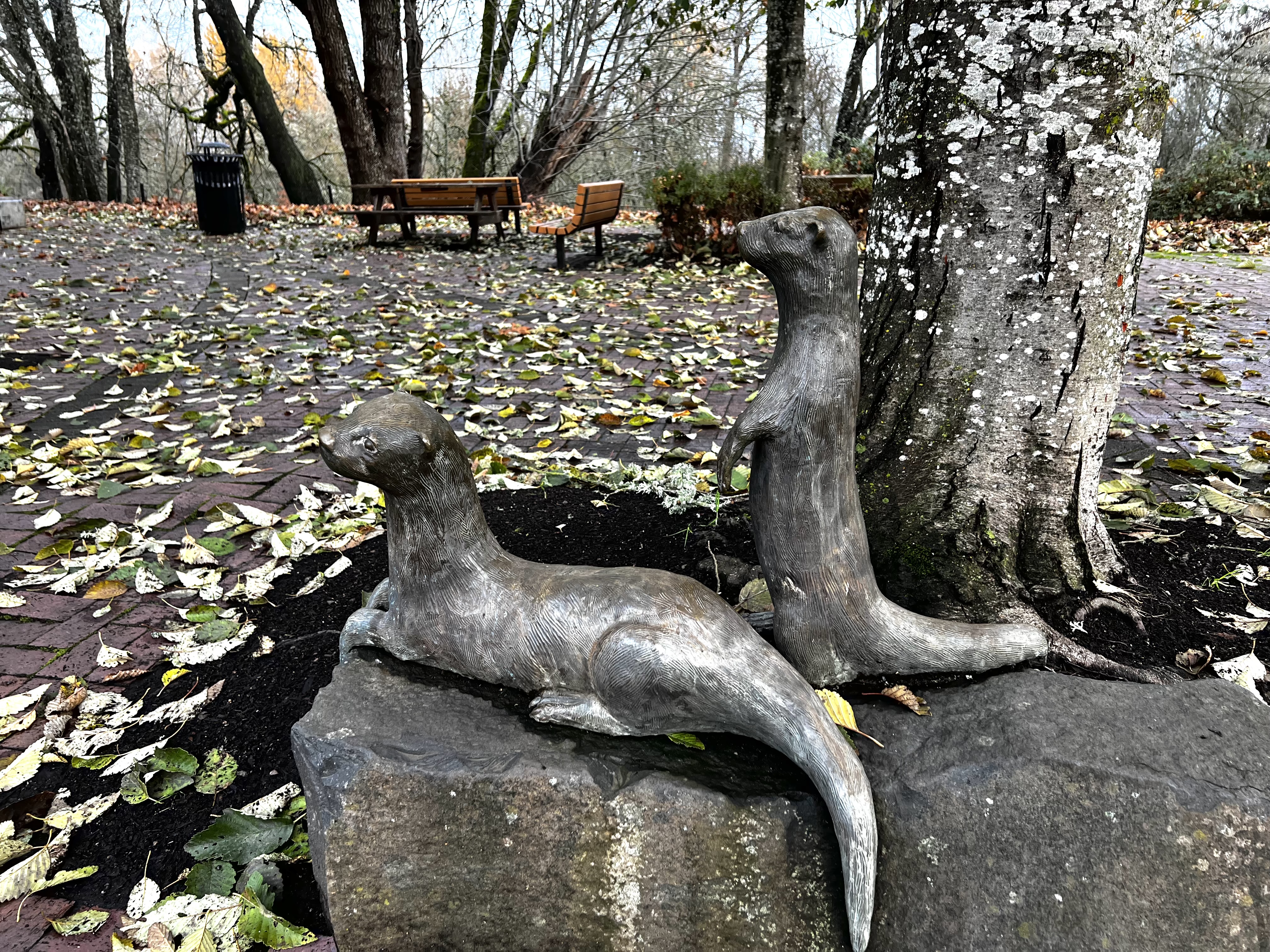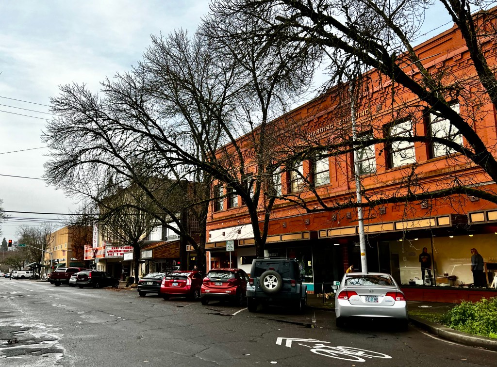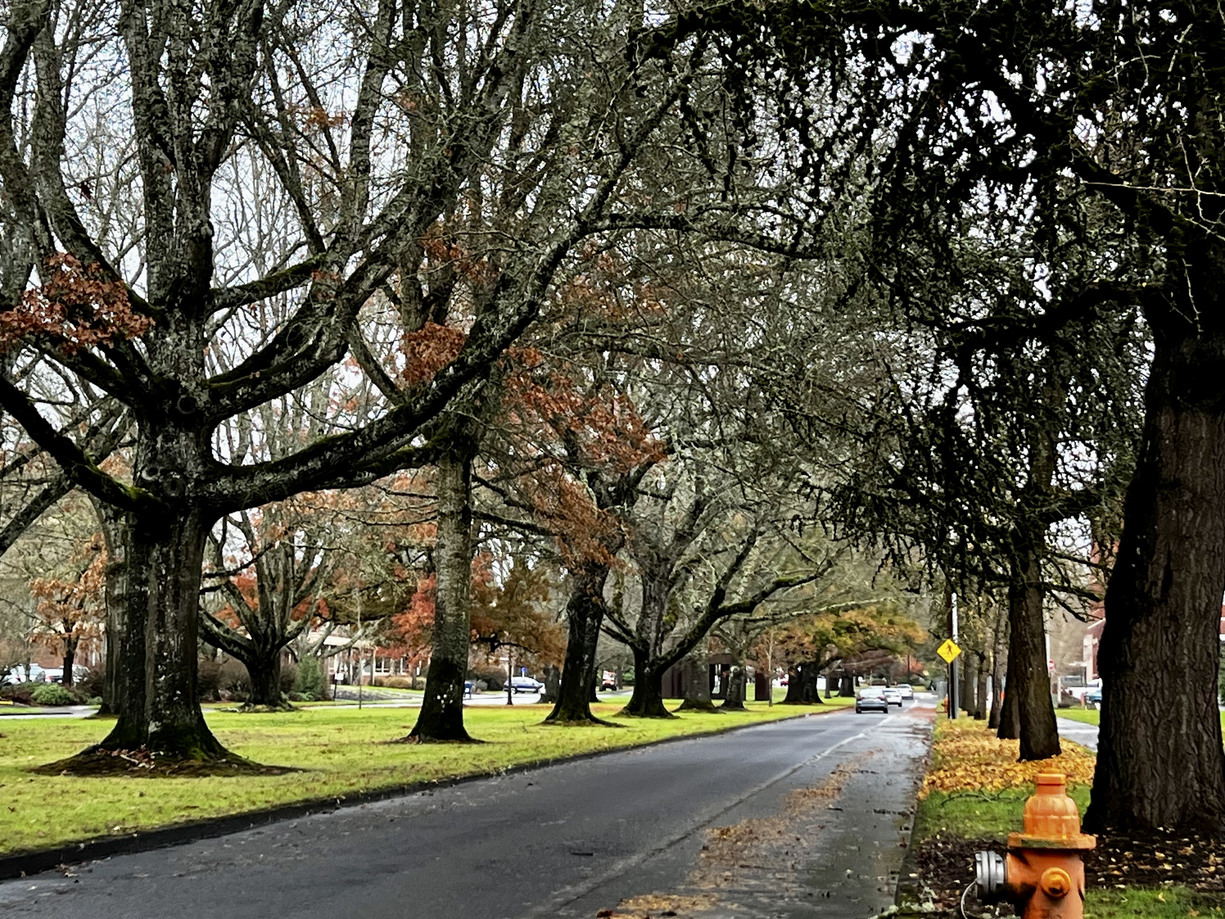 It was a gloomy, chilly, wet day in Corvallis. Carrie and I hung out a bit at the house (admiring their charming remodeling efforts), then Carrie gave me a tour of the campus (Oregon State University, home of the Beavers, not to be confused with University of Oregon, home of the Ducks, which is in Eugene) and downtown Corvallis. We shopped a bit (quite productive from a Christmas present standpoint!), walked down by the Willamette River, had lunch at a place with Planet in the name, shopped a bit more, then toured around a variety of neighborhoods to get a sense of the town. It’s nice.