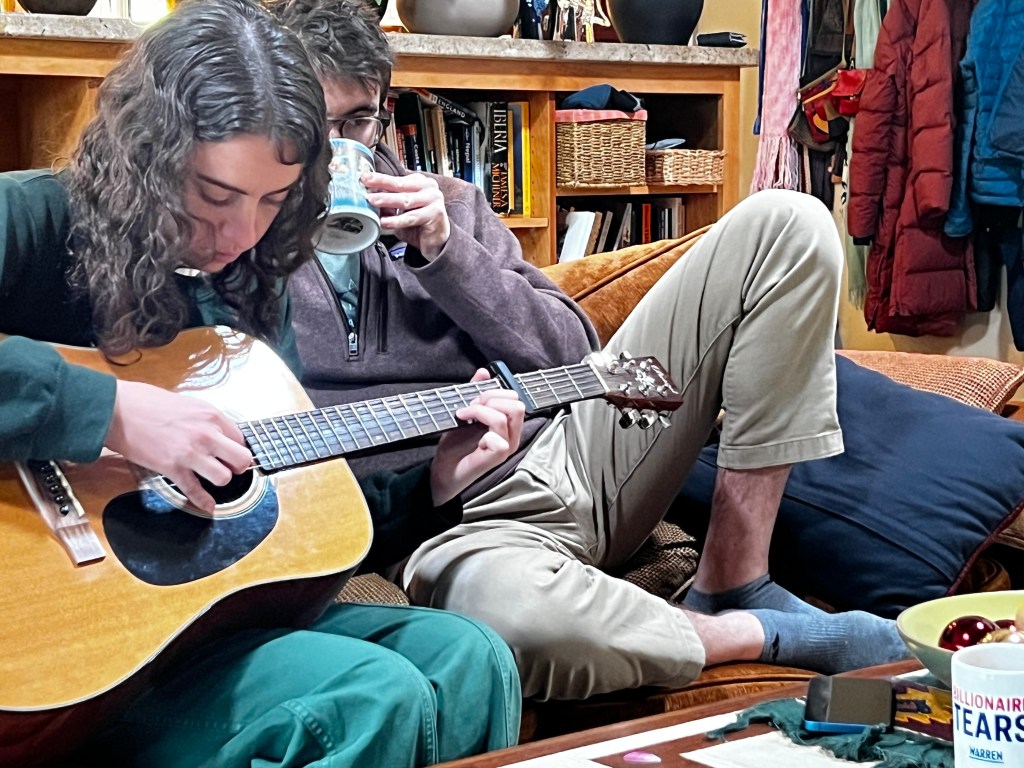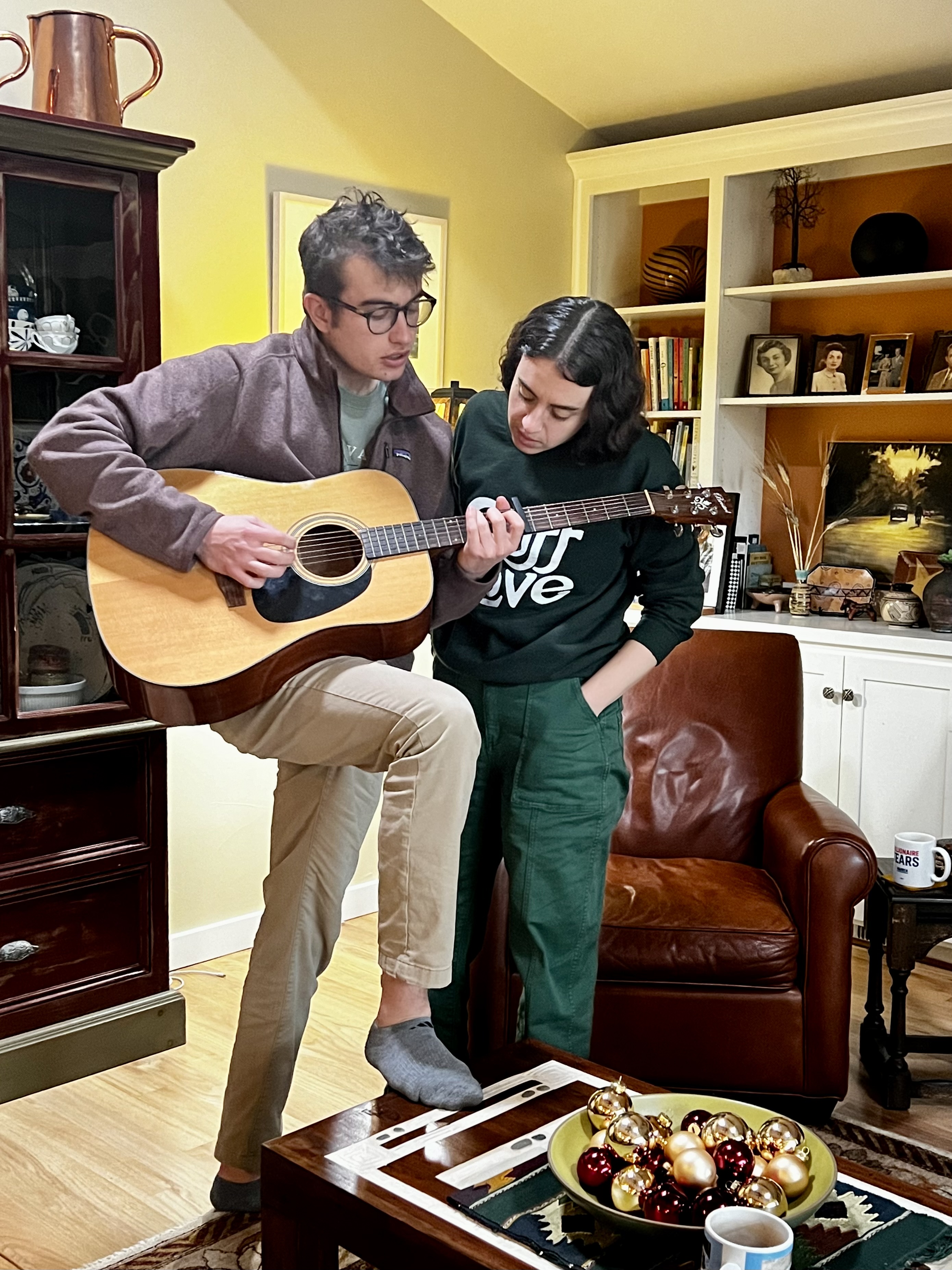 Today was about prepping Christmas Eve dinner and delivering baked goods. It was mostly about hanging with these cutesters, listening to them sing and trade off playing guitar.