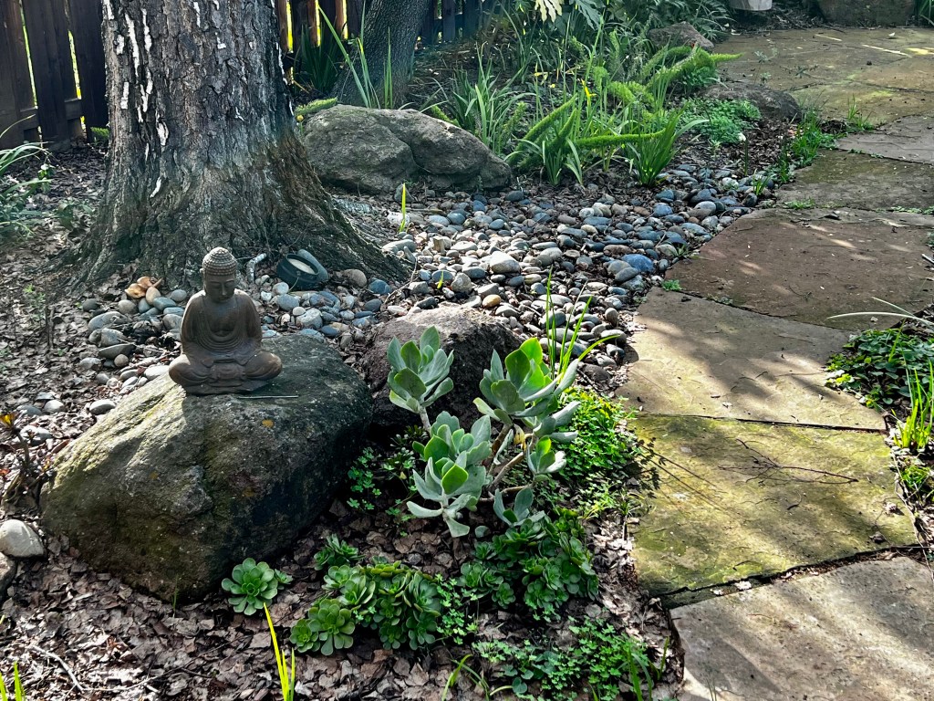 Everything’s been dormant, but the weeds are definitely popping up and color’s coming back. It’s supposed to rain later this week and the temps are supposed to drop back down to normal (40s and 50s). Very glad I got to enjoy the garden today.