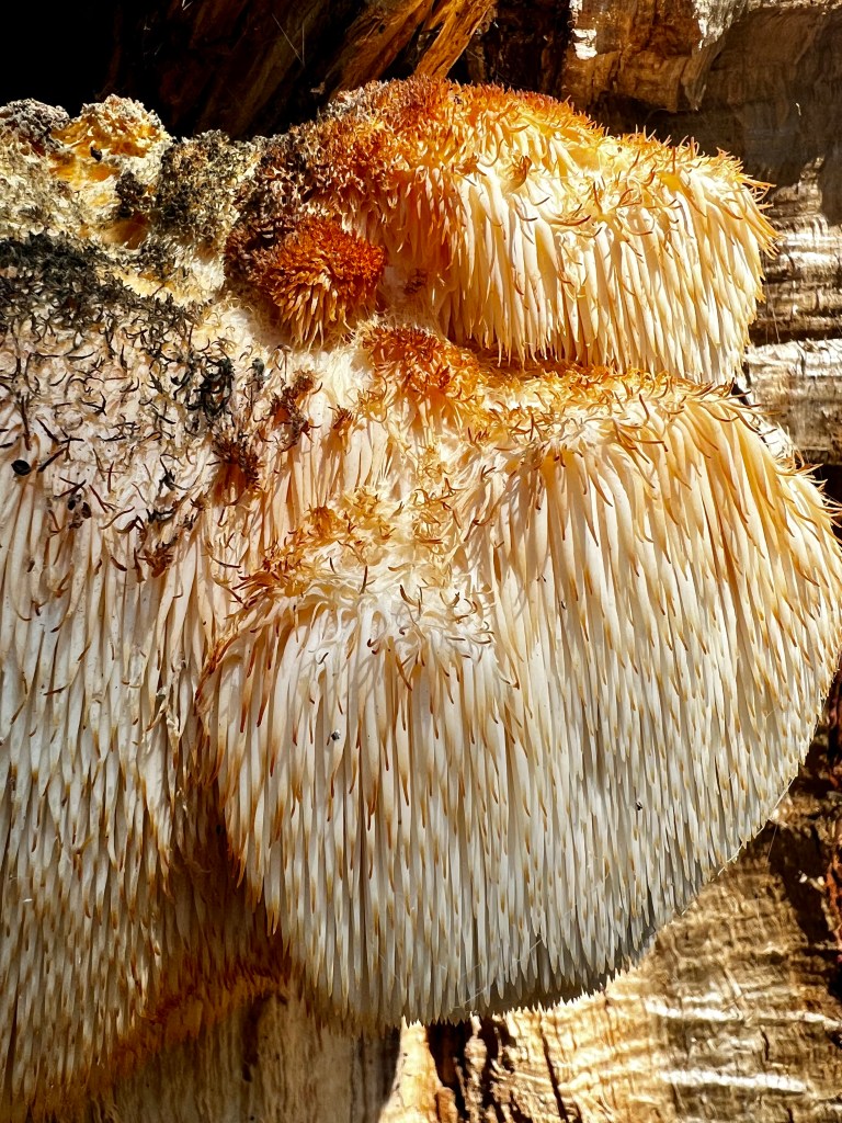 I’d estimate it’s 10-12″ in diameter-ish, or so. Ridgy, furry-looking, bulby, spongy. This one was taken the other night…