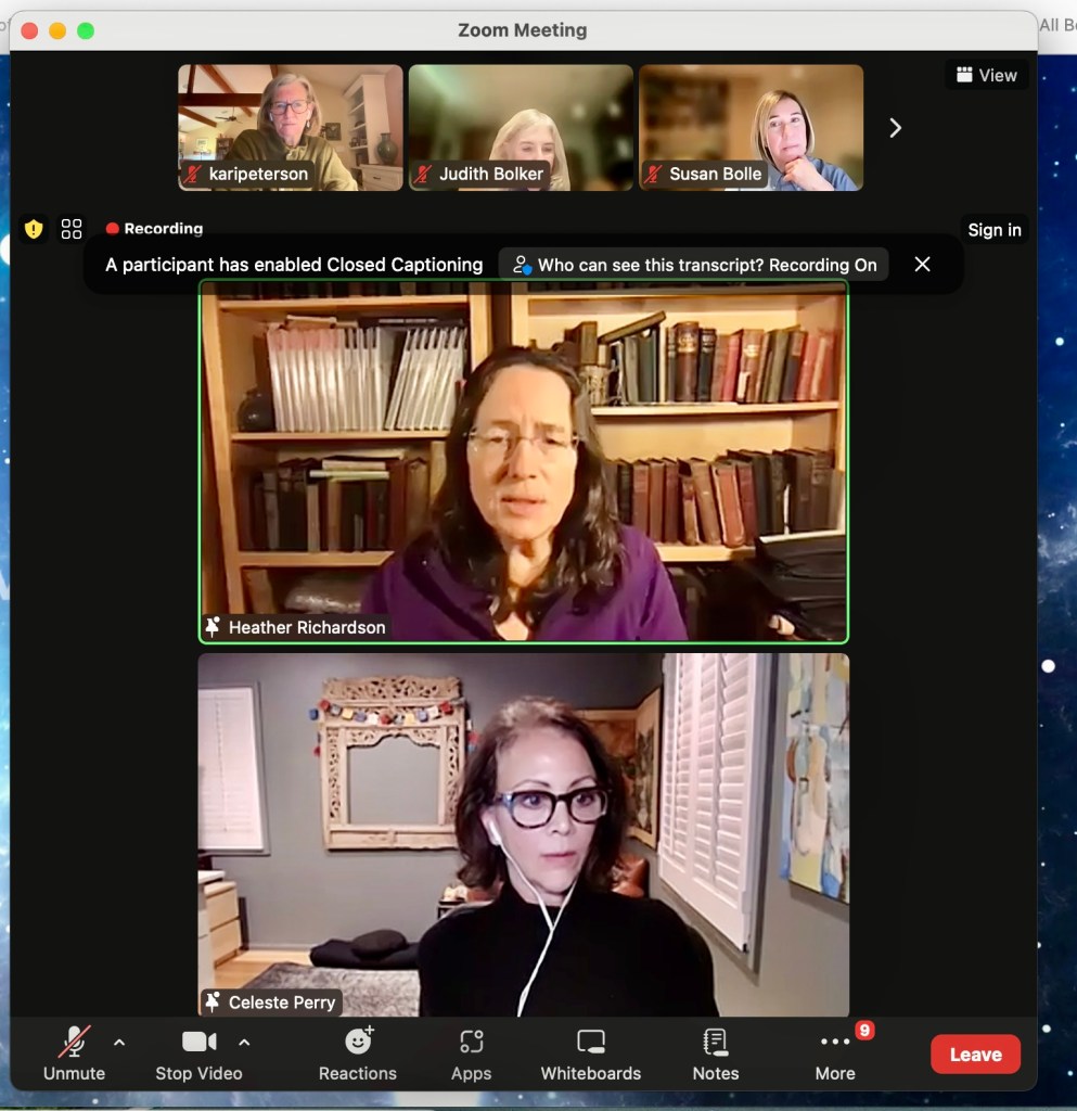 The zoom meeting tonight had nearly a thousand attendees. A THOUSAND ATTENDEES! We are all volunteers working with our various orgs, all committed to a favorable outcome in the upcoming presidential election (and some key downstream elections, as well). The guest speaker was Professor Heather Cox Richardson (Boston College) and she was as clear, informative and inspiring as always, (tonight in zoom-person, rather then in email newsletter form)! I was SO inspired. SO glad to have attended (even as I had to put the coverage of the New Hampshire primary on hold for a whole hour).