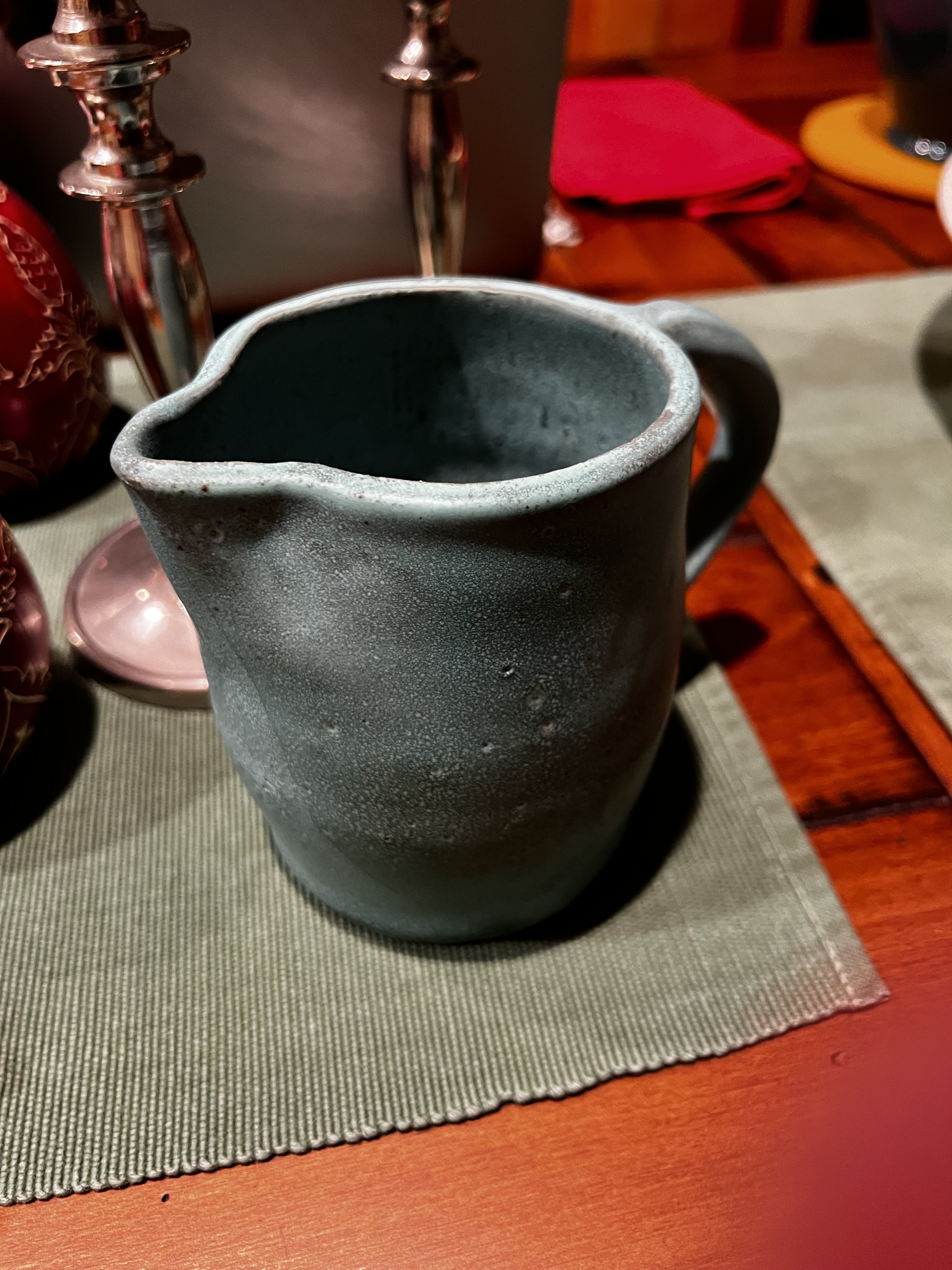 From the ever-thoughtful Maya, a couple of handmade ceramic pieces.. a small pitcher and a bowl, both made in her ceramic class. Beautiful and practical and homemade. She has said she appreciates the act of gift giving because it gives her a chance to get to know the person she’s gifting. I love her.