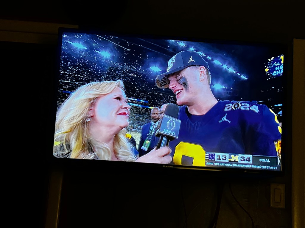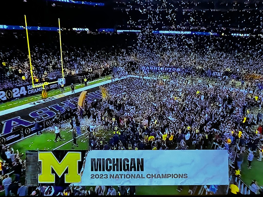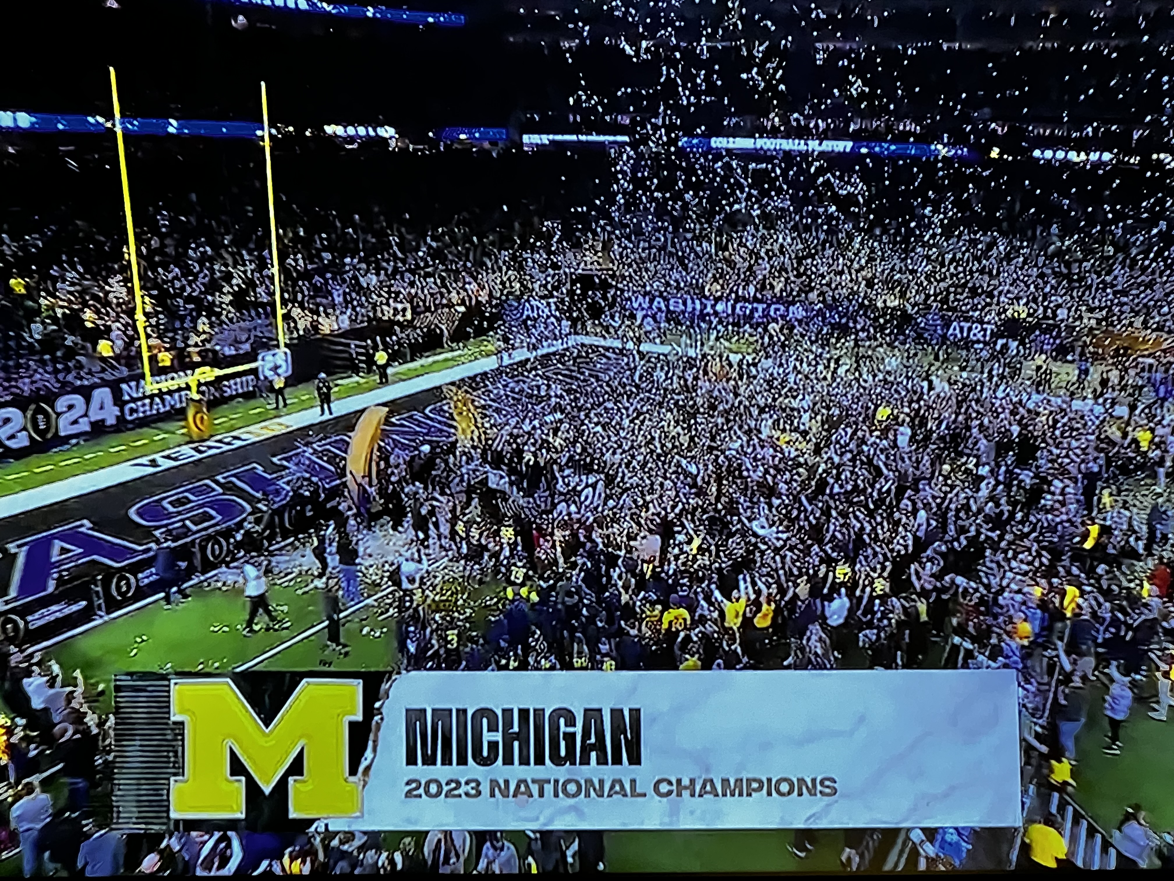 HUGELY devoted, wildly enthusiastic, rabid Michigan football fans Jim and Kari (uh..well, tonight anyway!) went nuts as the University of Michigan Wolverines won the National College Football Championships tonight, beating the University of Washington Huskies 34-13! We high fived and fist bumped and whooped it up at every touchdown, field goal, caught pass, first down, QB sack… you name it. It was so exciting to root for the winning team. And then it was over and we went back to our regular programming (meaning our puzzles and evening routines). Lol.