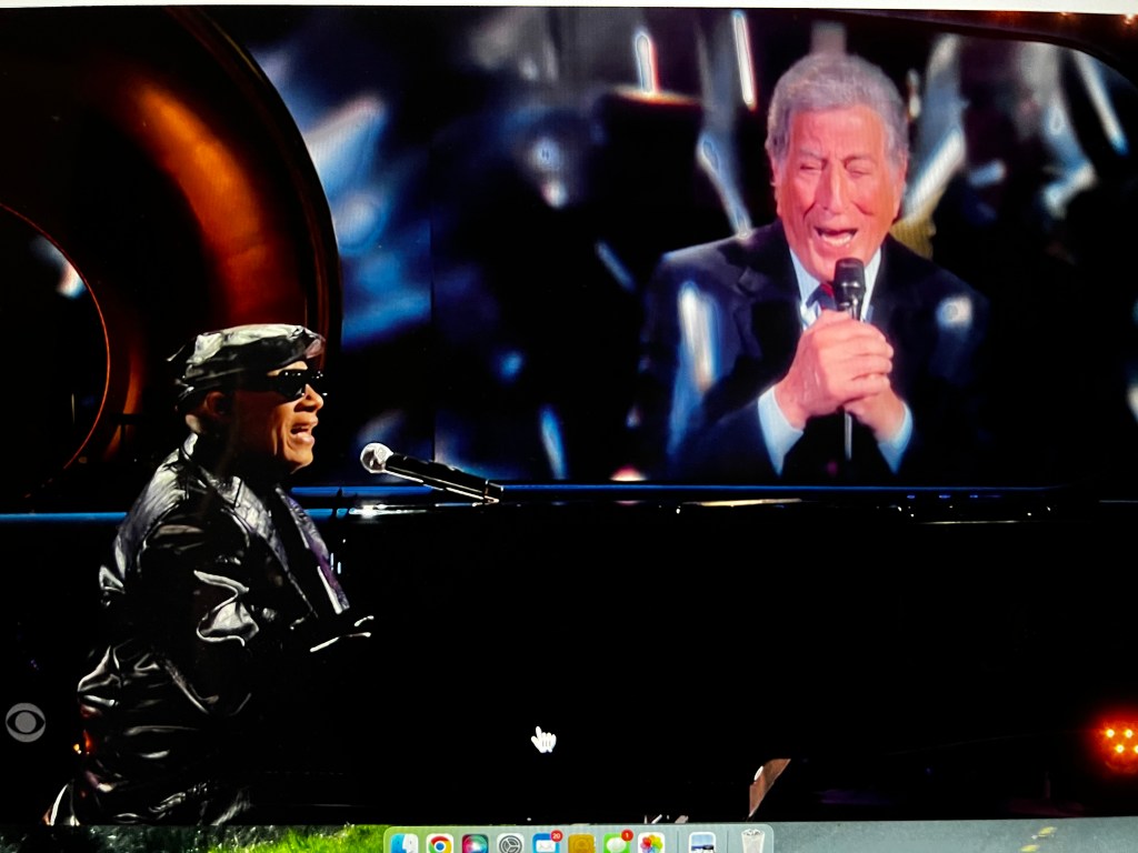 Stevie Wonder did part of the In Memoriam tribute. He started it off with a duet of For Once In My Life with (the dead) Tony Bennett (an impressive editing feat), and really moving: