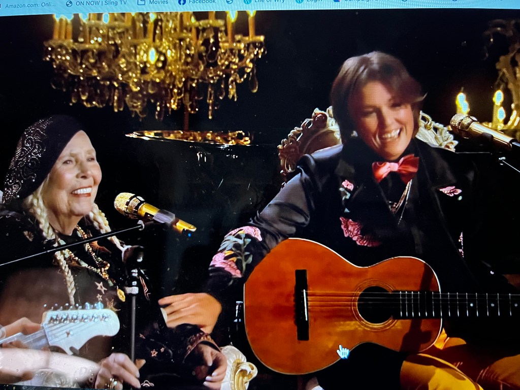I just couldn’t love this more… Brandi Carlile introducing and then singing Both Sides Now with Joni Mitchell, who’s 80 (jesus!) and has had to relearn how to walk, talk and sing after a brain aneurysm ten years ago.