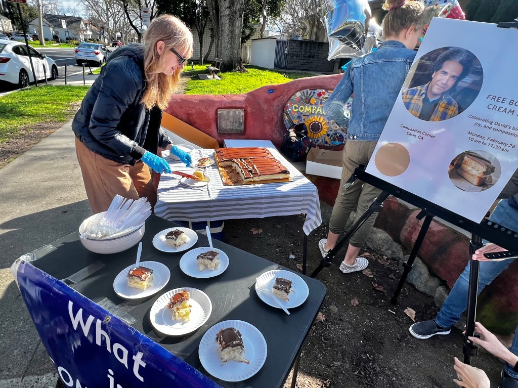 Today was both light and dark. We started the day by honoring David Breaux’s birthday.. by handing out free pieces of Boston Cream Pie — his favorite cake as a kid — at Compassion Corner. Afterward, we took the leftover cake to Paul’s Place, the new (ish) homeless shelter on H Street. The celebration brought out dozens of people who loved David and supported his life’s work of spreading compassion. Both the 90-minute gathering, and the time spent at Paul’s Place were affirming and loving.