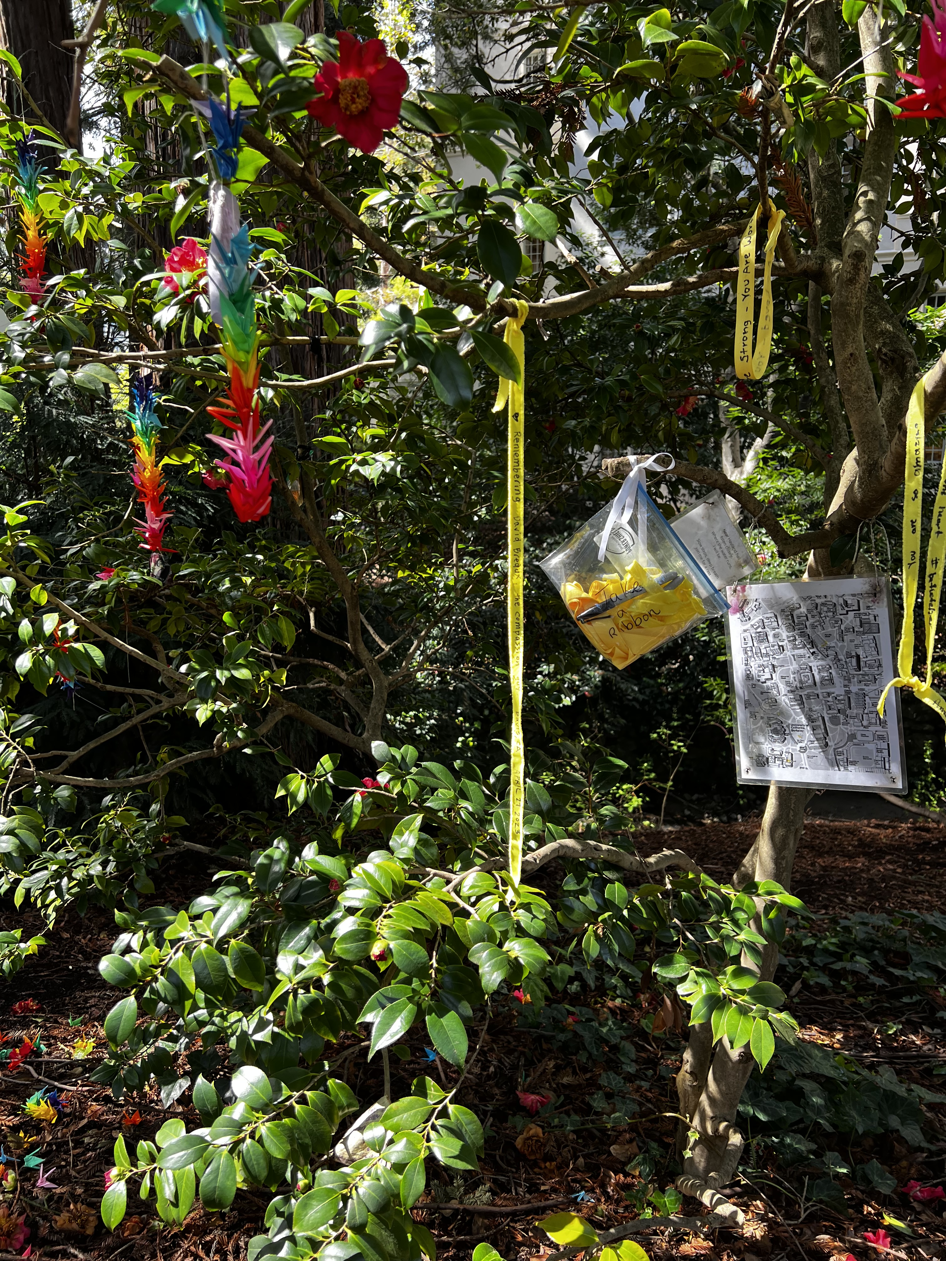 Saw a few new corners of campus today.. nice weather, fewer students than usual (spring break), and then happened upon this installation in a grove of redwood and camellia trees ….