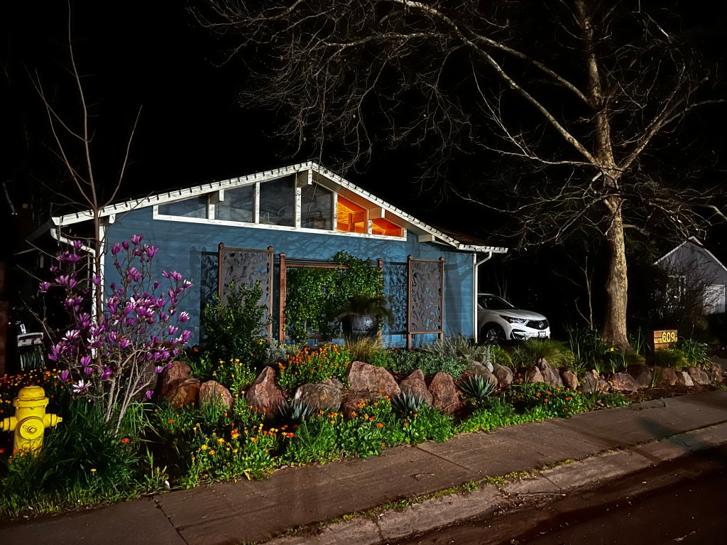 Unrelated: here’s what our house looks like at night… when the tulip tree is in full bloom and the calendula, daffodils, sour grass and poppies are emerging: