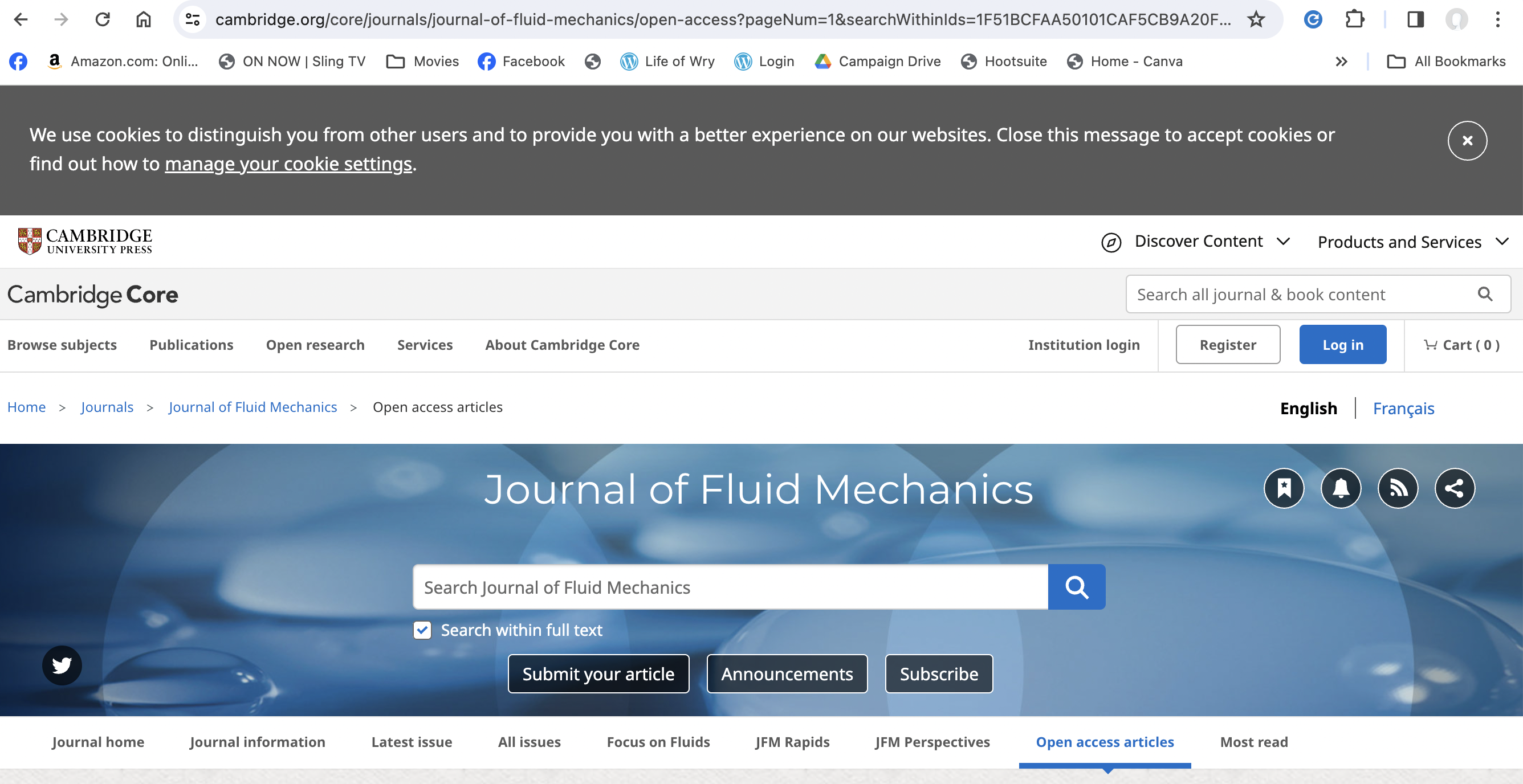 The Cambridge University Press’s prestigious Journal of Fluid Mechanics published eight articles today in its online publication for its Volume 983 – 25 March 2024 issue… and Peter’s was one of them.