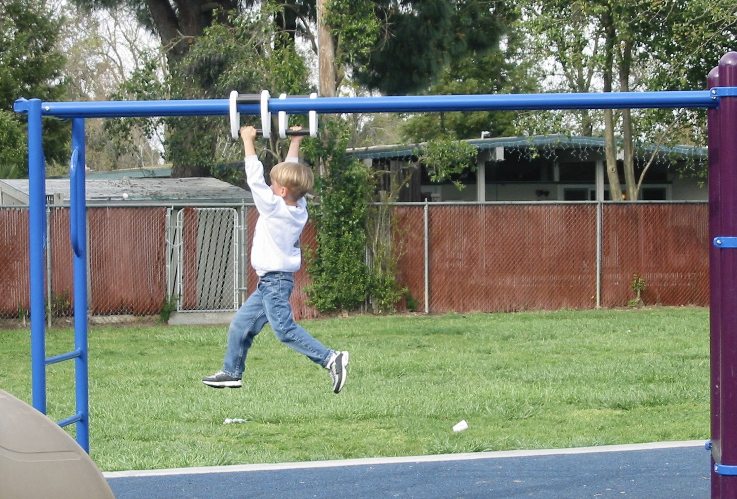 Peter would soon be graduating from Davis Parent Nursery School (an institution in Davis that is celebrating its 75th anniversary this year!) and heading to kindergarten at Cesar Chavez in the fall. We started to spend time on the playground over there to get him excited to start a new school. Here are some shots from one of those playground days.