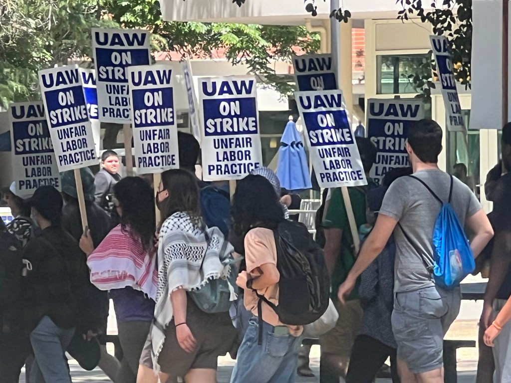 The year is winding down, which means it’s very busy on campus right now, but in a matter of weeks, the students will pack it up for the summer and things will quiet way down on campus and in town. Yay. The Pro-Palestinian encampment is still up and on this day they were joined on the quad by a grad student walk out. I think this one is a joint UC campus thing having to do with some students who were sanctioned for their participation in the protests. I think. I also saw a large bunch of folks gathered for the “Cork Harvest,” all clustered under the massive cork trees in the grove by the law school. Big doings!