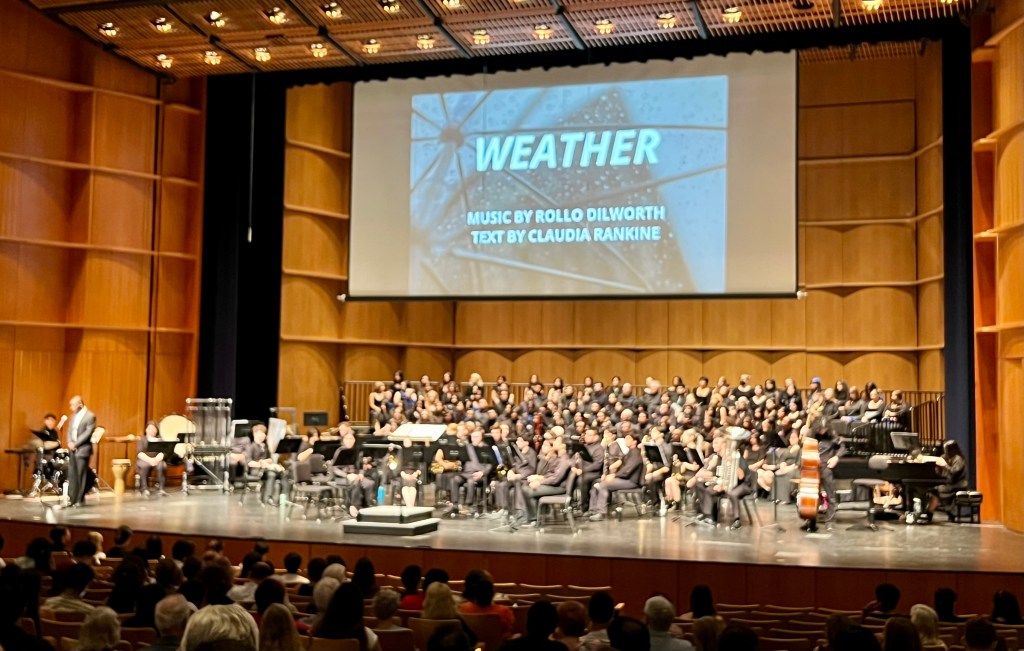 This piece was interesting…. called “Weather,” it was composed by Rollo Dilworth based on a poem about racial justice (injustice, actually) written by Claudia Rankine (who may have been sitting down the row from us).